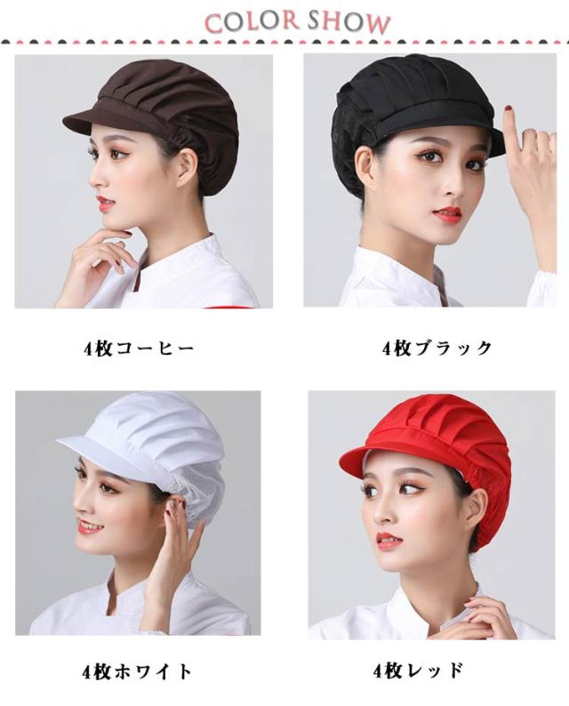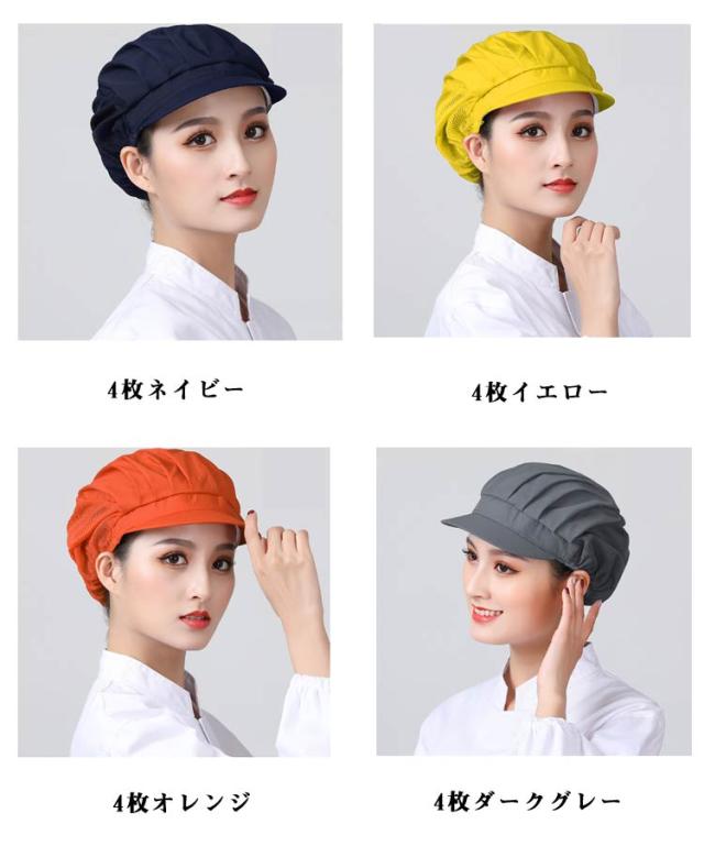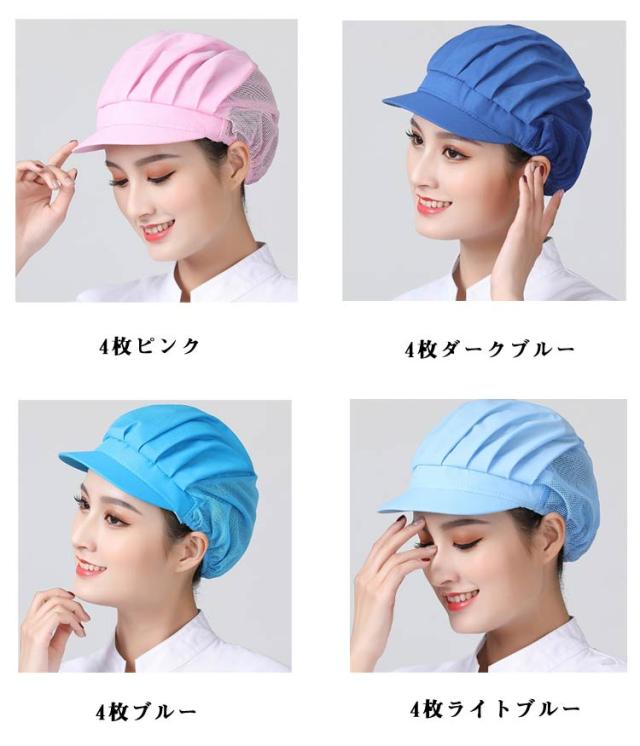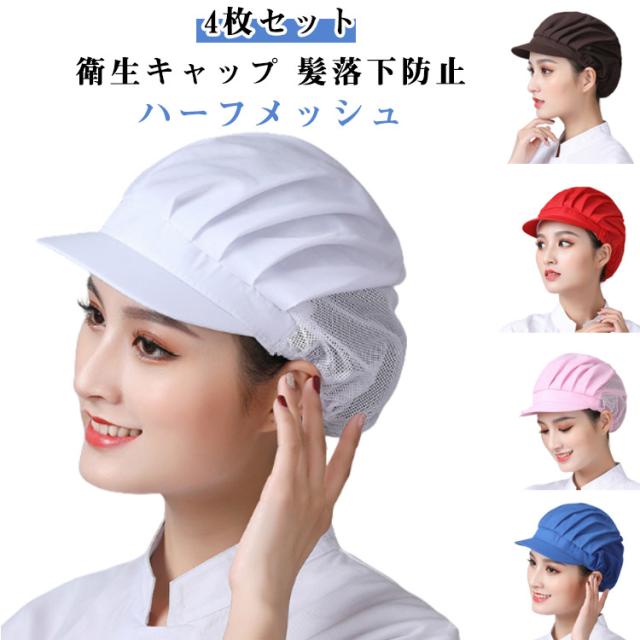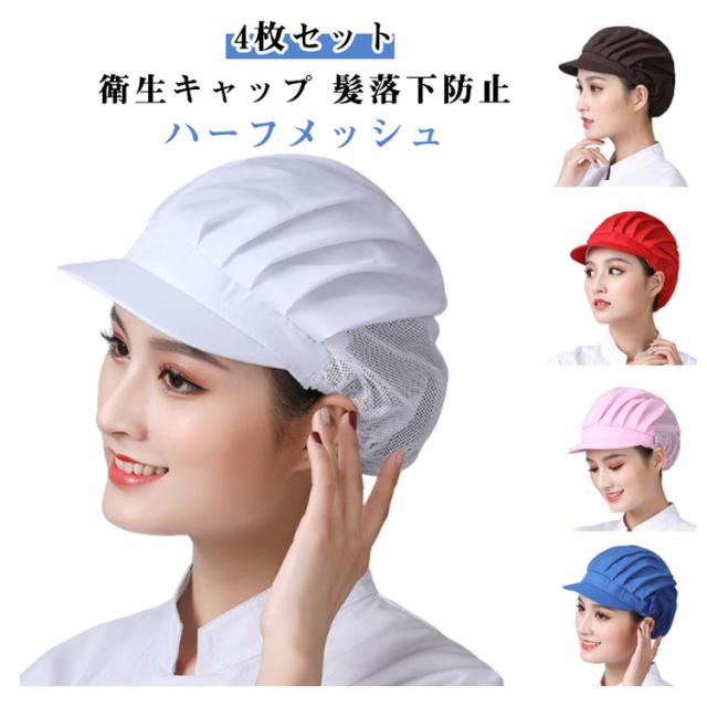 給食 ハーフメッシュ 4枚セット 髪落下防止 レストラン カフェ 衛生キャップ 厨房 飲食店備品 備品 通気性 給食帽子 カフェキャップ 4枚セット 工場 男女兼用 作業用
