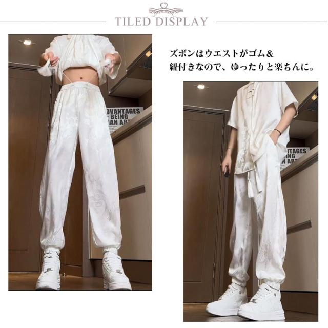 チャイナボタン 接触冷感 接触冷感 セットアップ メンズ 涼しい 龍柄 チャイナシャツ ダンス 上下セット ロングパンツ 半袖 上下 カジュアルシャツ カンフーシャツ UVカット ルームウェア 2点セット 普段着 部屋着 太極拳 唐装 演舞服 男性用 父の日 春 夏
