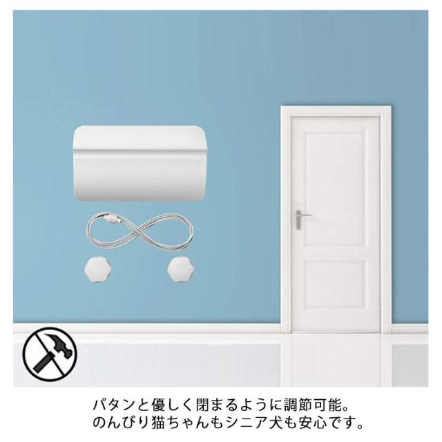 | 工事不要 貼るだけ 半自動ペットドア 自分で出入りできる。ペットが通り過ぎたあと、ドアは自動でしまります。 パタンと優しく閉まるように調節可能。のんびり猫ちゃんもシニア犬も安心です。 シリコン製のロープを巻きつけることで、ドアの開閉の速さを調節できます。 | |