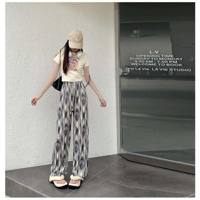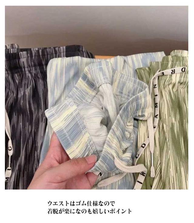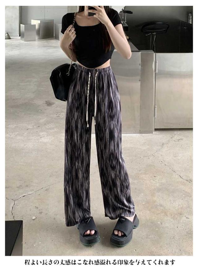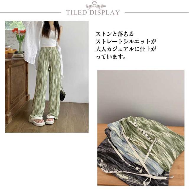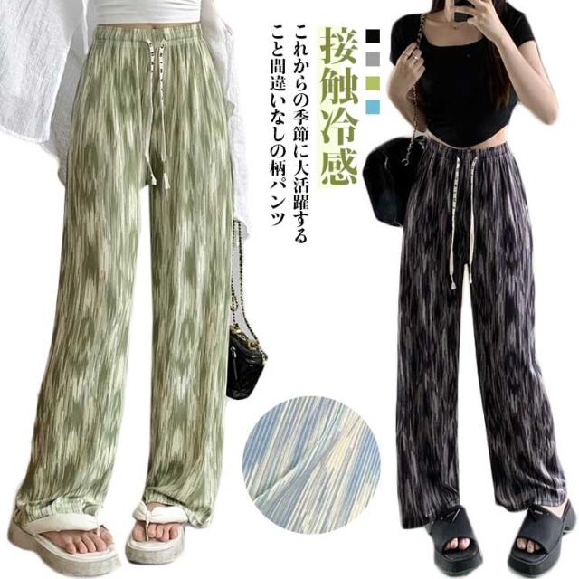 大きいサイズ 薄手 カジュアル ワイドパンツ ストレートシルエット イージーパンツ レディース 接触冷感 総柄 リラックスパンツ ひんやり 涼しい ルームウェア 大きいサイズ 柄パンツ ゆったり リラックス イージーパンツ プリーツパンツ 夏用 大人 オフィス 通勤