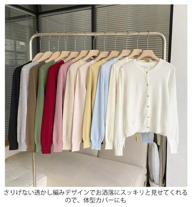 | 肌寒い季節の防寒や伸縮性抜群! いつまでも快適な着心地を保つ、とっても優れもののカーディガン。 ストレッチが効いてサラリとした肌触りが心地よい、大人気のトッパ—カ—ディガンです。 さりげない透かし編みデザインでお洒落にスッキリと見せてくれるので、体型カバーにも オフィス、スクール、デート、フォーマルなどあらゆるシーン、幅広い年代にオールシーズンお使いいただけるお役立ちアイテムです。 | |