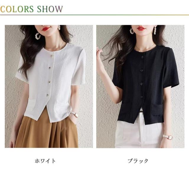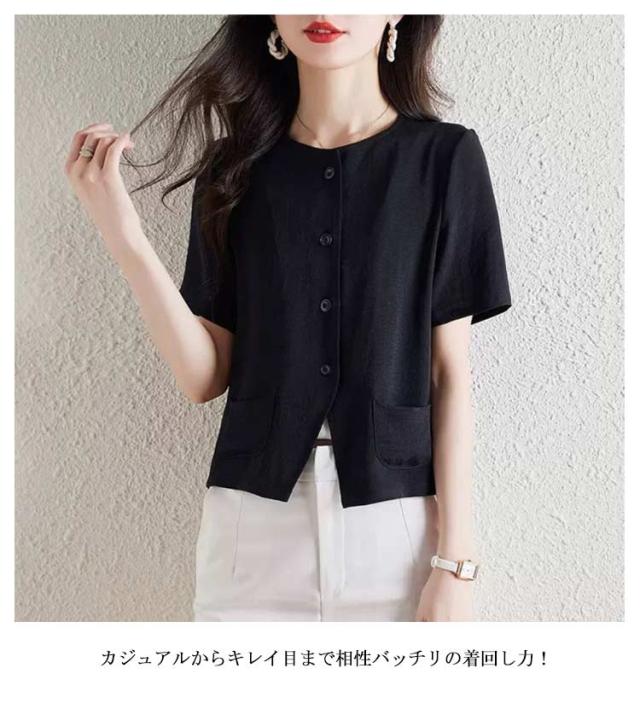 綿麻風 半袖ジャケット サマー 綿麻風 夏 カーディガン 薄手 半袖 カーディガン 羽織り ショート丈 ゆったり トップス 大きいサイズ 通勤 シンプル お洒落 カジュアル ビジネス エレガント フォーマル 黒
