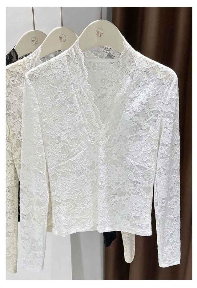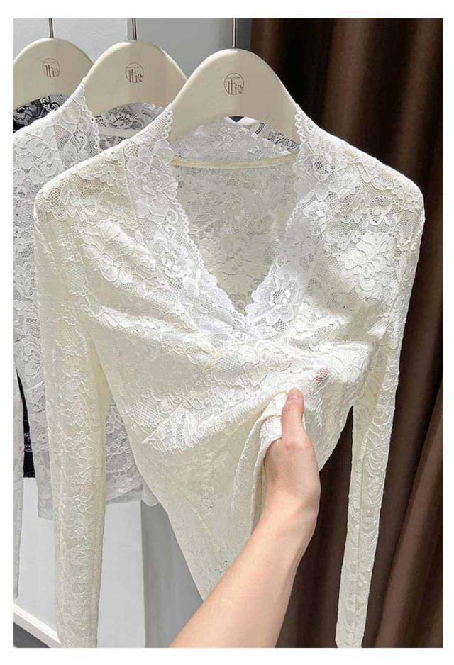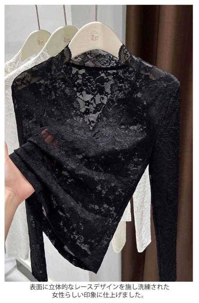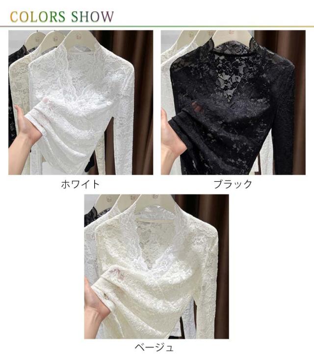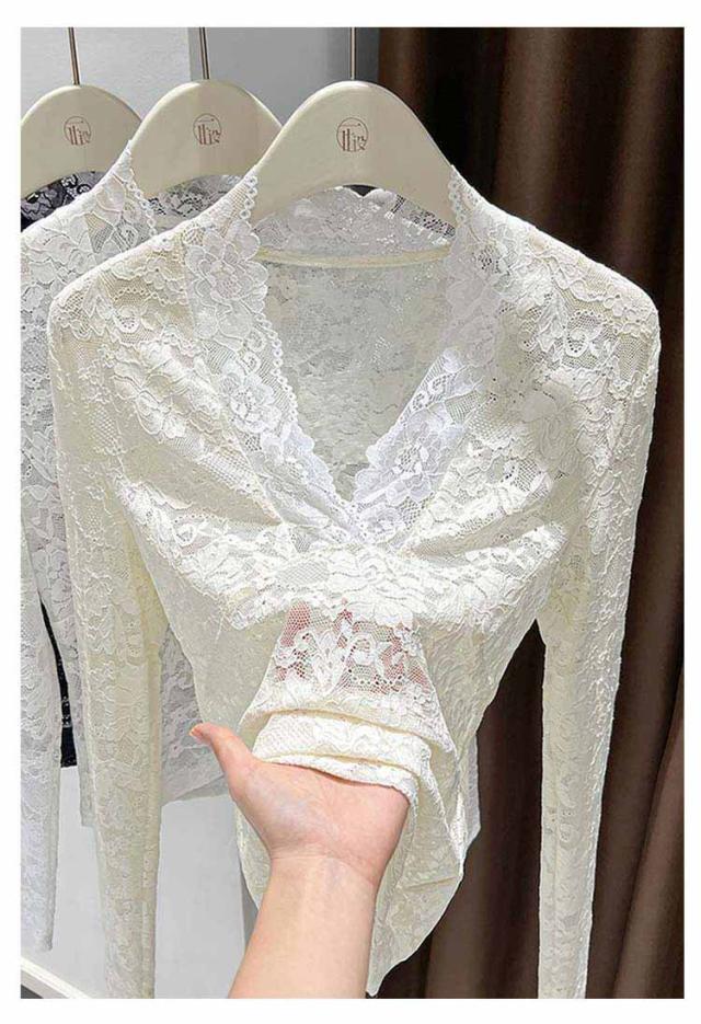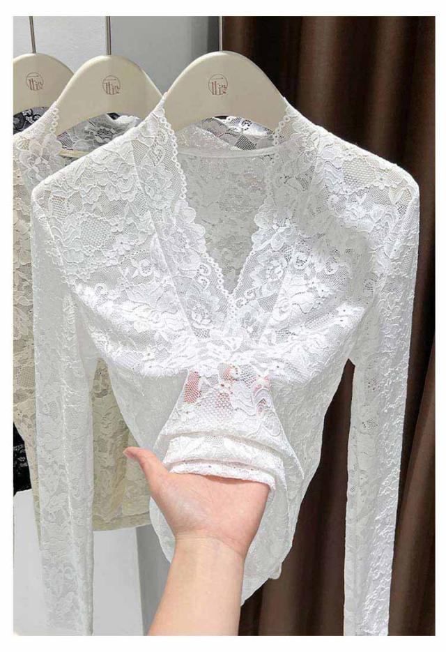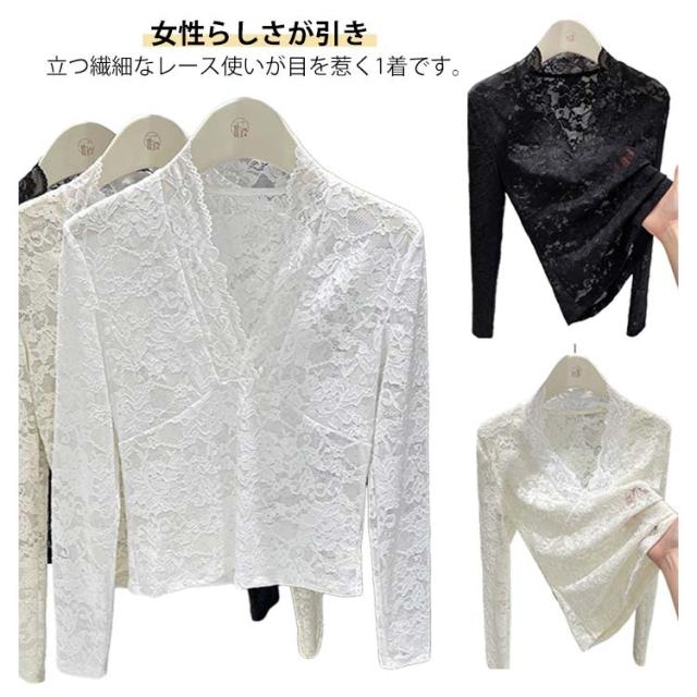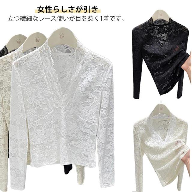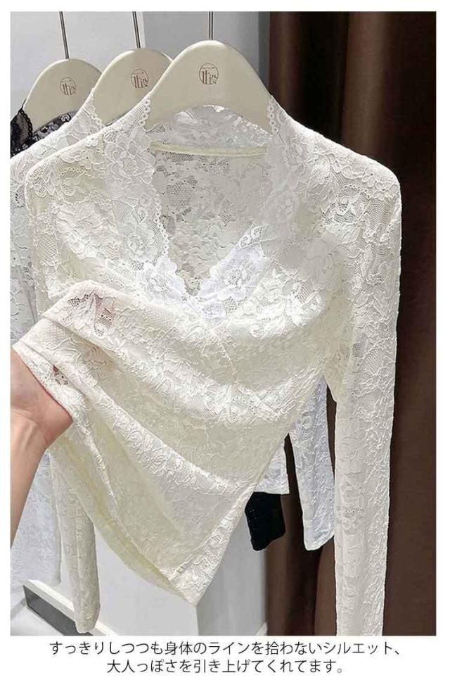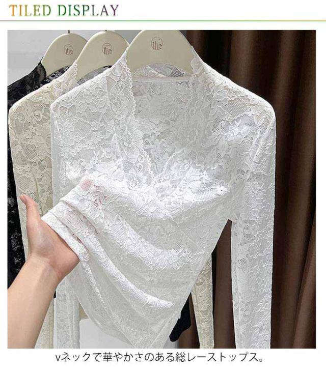春秋冬 重ね着 長袖 レディース レースインナー 透け感 レイヤード レースカットソー Vネック シアー 長袖 トップス Tシャツ セクシー 花柄 総レース 花柄レース 通学 通勤