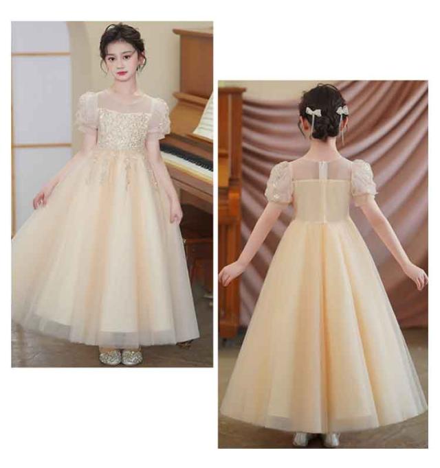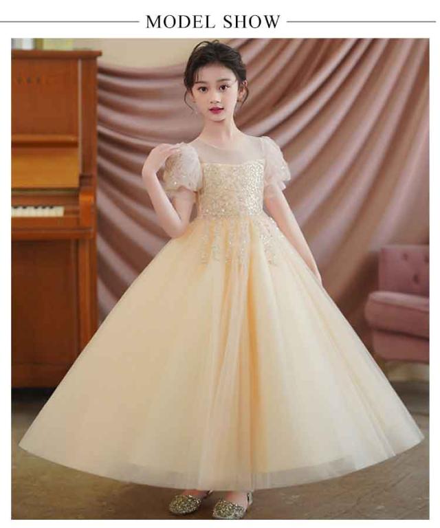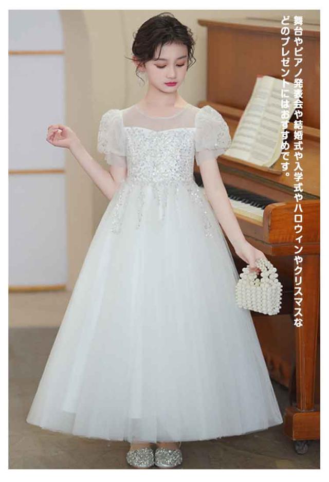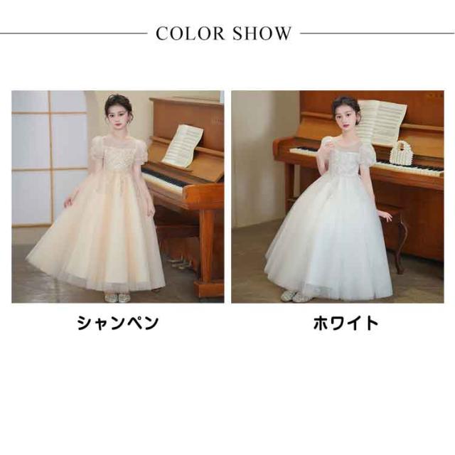 ドレス ロングドレス ピアノ発表会 パーティードレス 女の子 パフスリーブ チュール 半袖 フォーマル ドレス 七五三 小学生 中学生 キッズ 小学生 中学生 子供ドレス ピアノ 発表会 コンクール