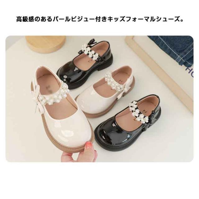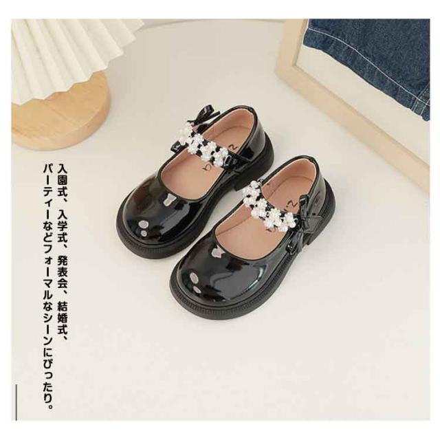 女の子 黒 キッズ ストラップ 小学生 フォーマル靴 ブラック ピアノ発表会 フォーマルシューズ 子供服 結婚式 ビジュー 幼稚園 コンクール パール リボン 可愛い