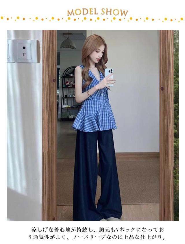 ノースリーブ 夏 vネック ブルー オフィス ノースリーブブラウス レディース フリルベスト 春夏 かわいい 薄手 シャツ おしゃれ トップス 袖なし カジュアル スリム 通勤 ストレスフリー セレモニー 韓国ファッション