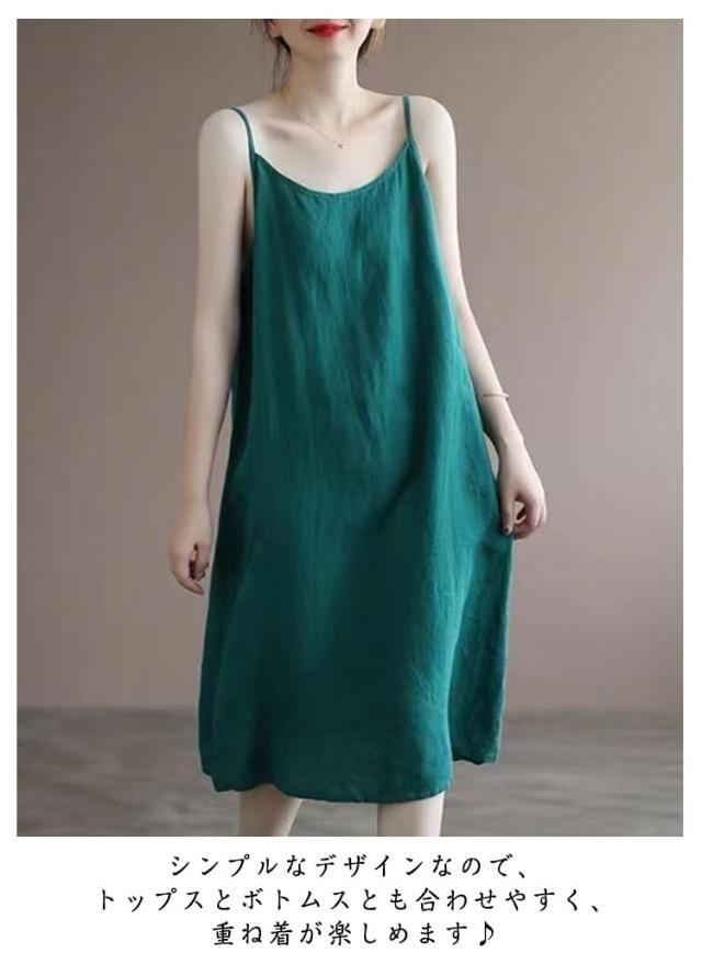 | ロング丈キャミワンピ!シンプルなインナーキャミソールワンピース。 柔らかいコットン生地、夏は涼しいし冬は静電気では心配しない。 ゆったりとした身幅でリラックスした着心地。 体型もカバーしながらこなれ感のあるお洒落が楽しめる。 長めな丈感が大人っぽく、シンプルなきれいめ感が漂う。 シンプルなデザインなので、トップスとボトムスとも合わせやすく、重ね着が楽しめます♪ | |