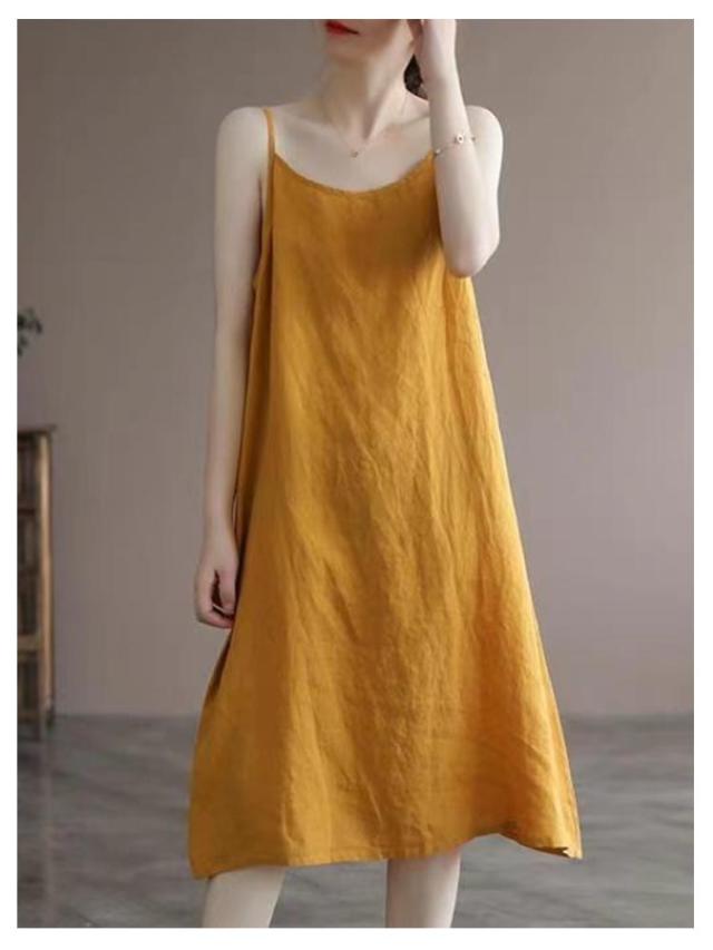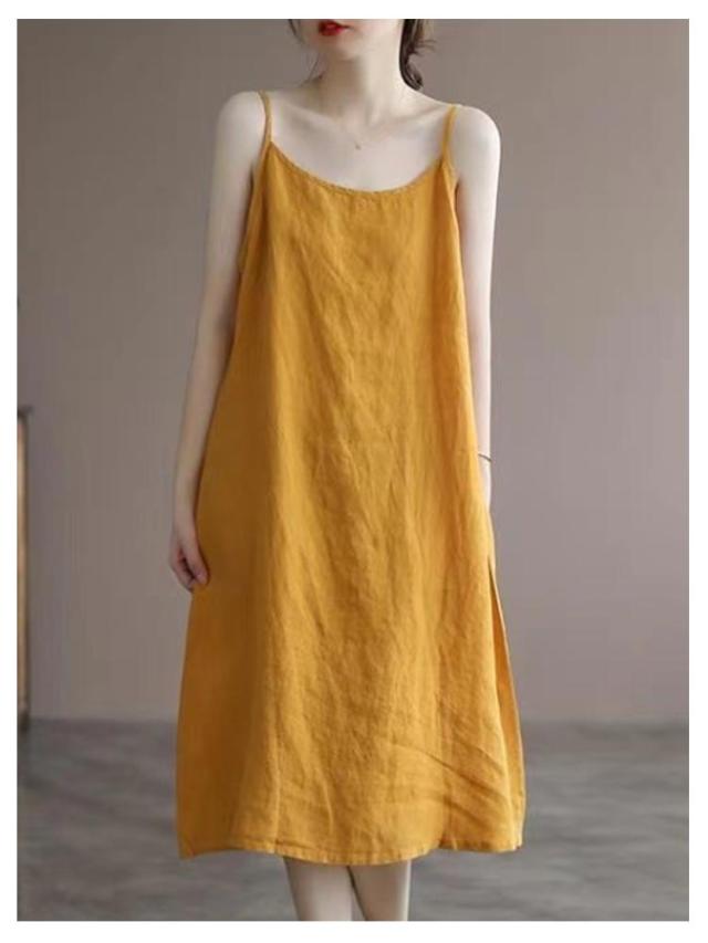 無地 Aライン ワンピース ノースリーブ キャミソール 体型カバー ミモレ丈 レディース 夏 キャミワンピ ロングワンピ ゆったり 綿混 キャミワンピース 袖なしワンピース 薄手 キャミワンピ Aラインワンピース ホワイト