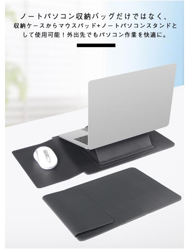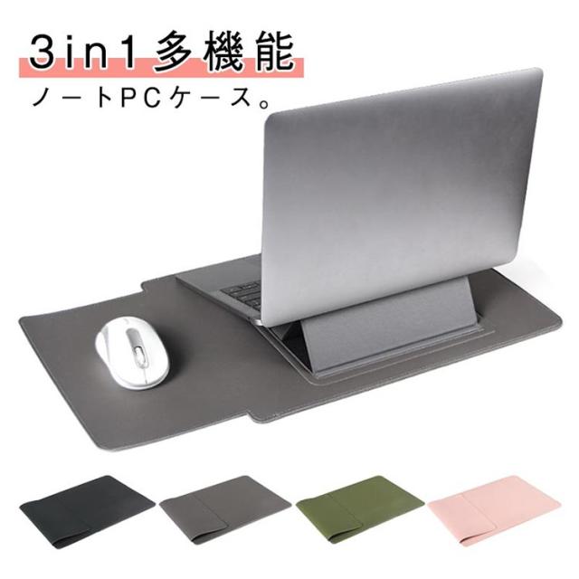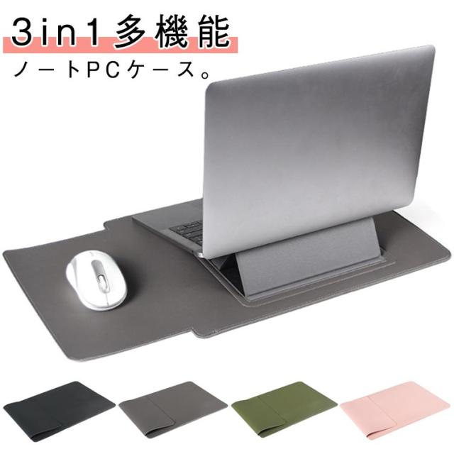 3in1多機能 ノートパソコンケース PCケース スタンド機能付き 角度調整可能 マウスパッド puバッグ 放熱対策 PCバッグ 薄型 PCスタンド 撥水 ノートパソコンバッグ インナーケース 保護ケース