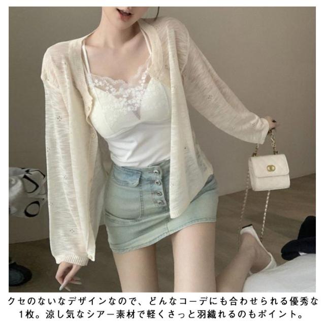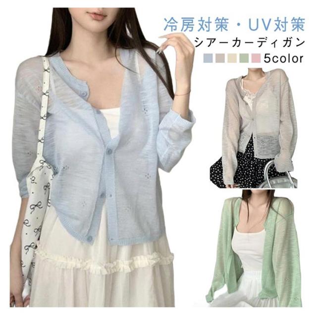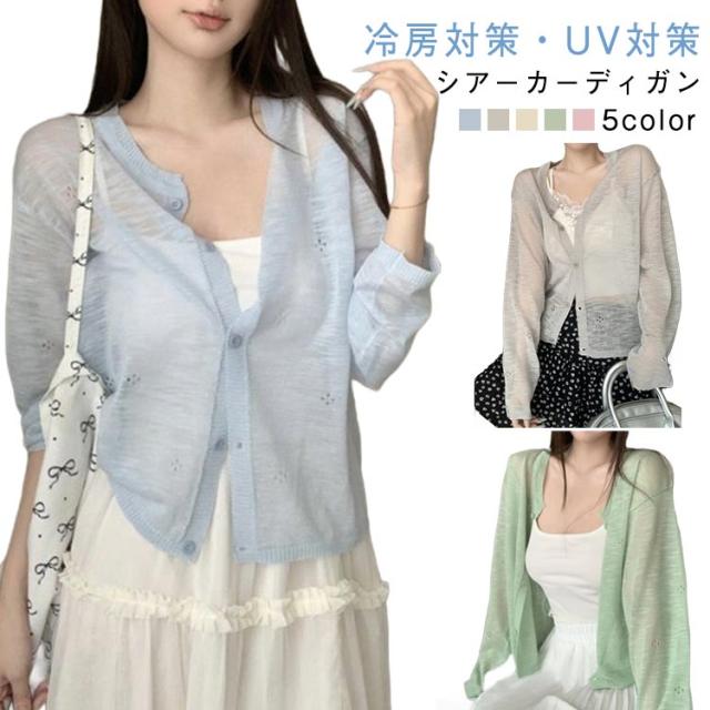 レディース カーディガン シアーカーディガン カーディガン トップス ショート サマーニット 夏用 メロウ 薄手 カーディガン 羽織り 長袖 vネック ショート丈 vネック 透け感 サマー 涼しい 重ね着 日焼け対策 紫外線対策 サマー 春夏