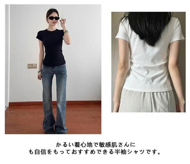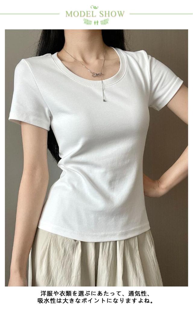 無地 半袖 スリムインナー カットソー Tシャツ Uネック スリム 夏 白インナー 綿 tシャツ ノーブラ tシャツ tシャツ 襟ぐり広め ストレッチ アンダーシャツ 袖短めシャツ インナーシャツヨガ ジム ルームウェア