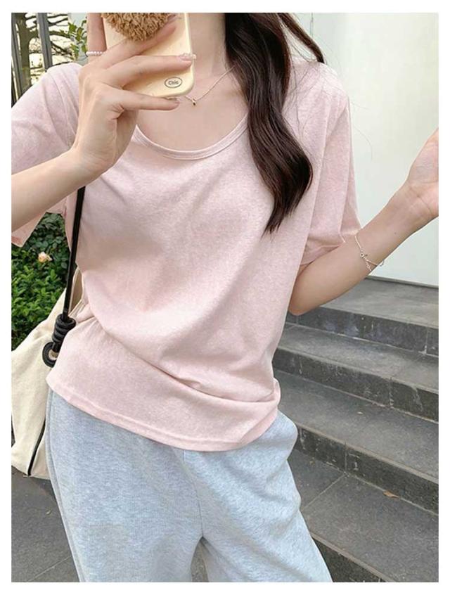 肌着 半袖tシャツ コットン カットソー Uネック 重ね着 カジュアル tシャツ コットンTシャツ ノーブラ tシャツ 半袖 Tシャツ インナー 綿 シンプル ゆったり tシャツ おしゃれ トップス かわいい 着?せ 体型カバー 無地 オフィス 夏