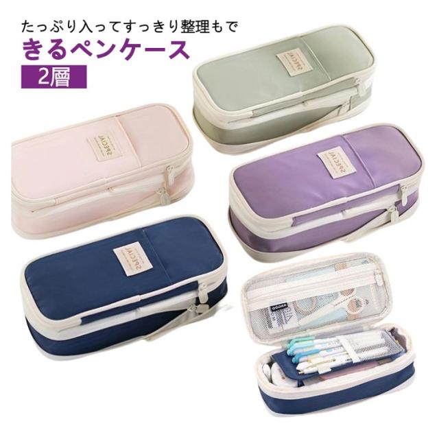 筆箱横開き 大容量 マチ拡張 ペンポーチ 大学生 筆箱 ガバッと開く 小学生 おしゃれ 高校生 大人女子 ペンケース 女性 マチ拡張 社会人 多機能 中学生 2層 かわいい シンプル 人気 新学期 入学 スリム 仕切り プレゼント くすみカラー