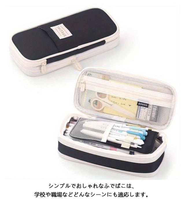 | たっぷり入ってすっきり整理もできるペンケース 見た目はコンパクトでもこんなにたっぷりの文具が収まります♪ ペン以外にも付箋やのりなど、いろいろな文房具を使う人にオススメのペンケース♪ お気に入りの文房具をたっぷり詰め込んで、楽しく勉強しよう! シンプルでおしゃれなふでばこは、学校や職場などどんなシーンにも適応します。 誕生日、クリスマス、入学祝い、卒業祝いのプレゼントとして最適です。小学生、中学生、高校生、大学生、大人、女の子、男の子が使用できます。 | |