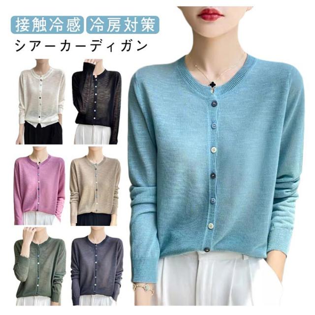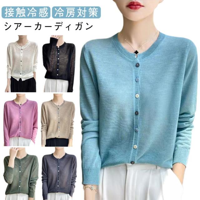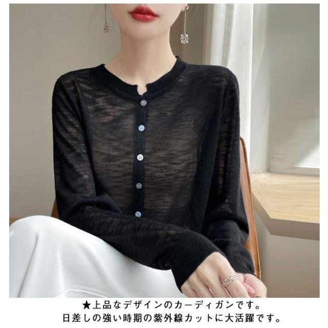 カーディガン シアーカーディガン レディース シースルー 薄手 春 シアーカーディガン サマー 夏 UVカット Vネック シアートップス 羽織り 長袖 紫外線 軽い 涼しい 透け 接触冷感 ゆったり 冷房対策 日焼止め 通勤 仕事用