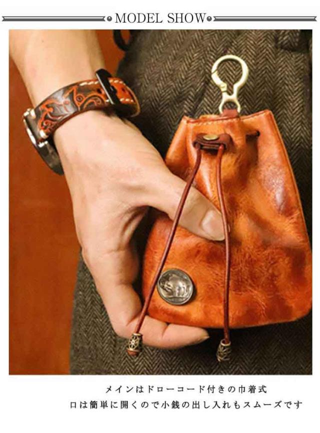 ポーチ 巾着袋 メンズ レディース 小物入れ ミニウォレット コンパクト コインポーチ フック付き ミニ財布 コインケース 巾着式 カード入れ ミニポーチ レザー 男性 就職 誕生日 プレゼント ギフト 小銭入れ レッド イエロー ブラック コーヒー ブラウン