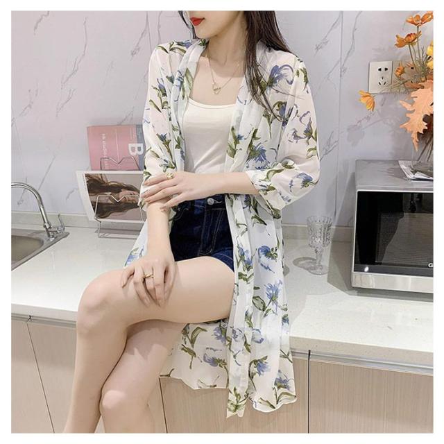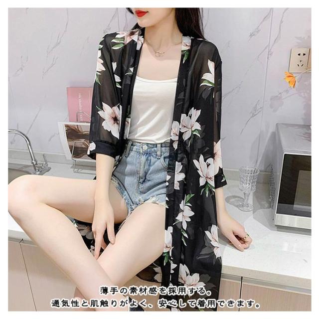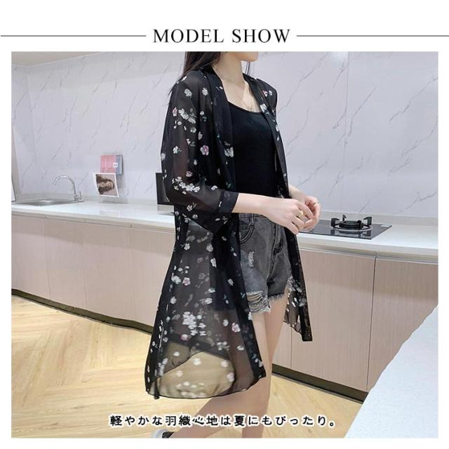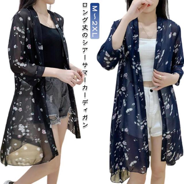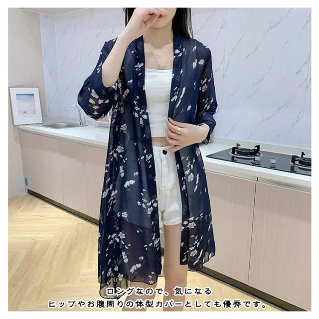 サマーカーディガン シフォンカーディガン ロング丈 サマー 羽織 薄手 総柄ロングカーディガン 冷房対策 カーディガン シフォン 総柄 紫外線対策 総柄ロングカーディガン たいけいかば ひよけ 春夏 おしゃれ 可愛い 大人女性 ライトアウター