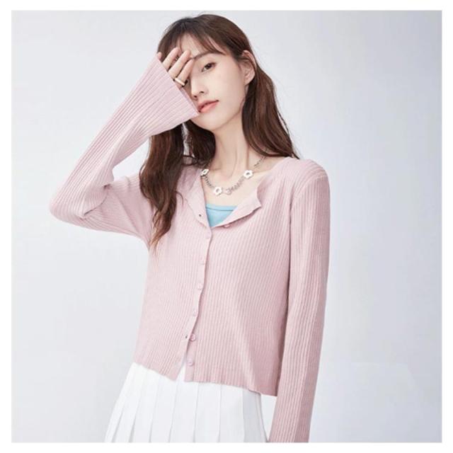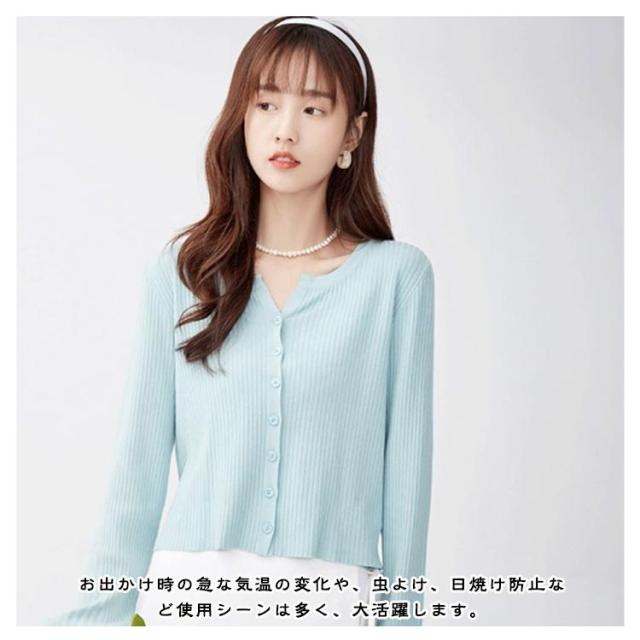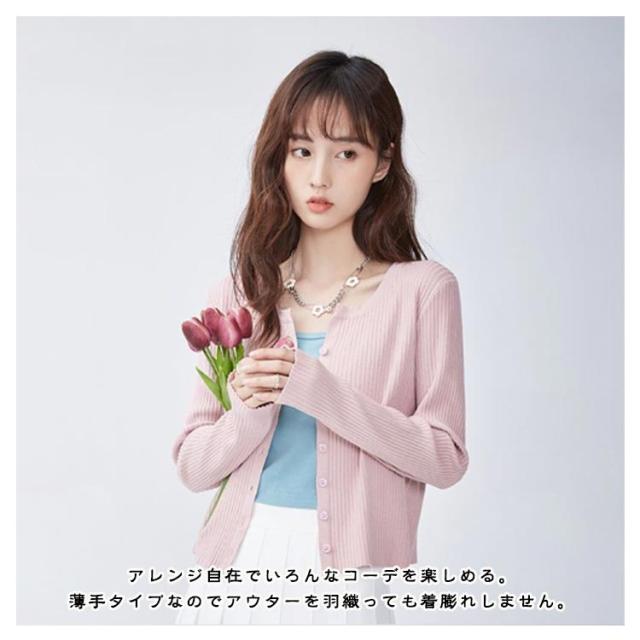 ショート丈 ニットカーディガン サマーカーディガン シンプル 春 羽織 オフィス 薄手 長袖 UVカット カーディガン 長袖 通学 冷房対策 レディース 夏 紫外線対策 サマーカーディガン 春夏 通勤 羽織り 前開き 丸首 無地 かわいい 羽織り