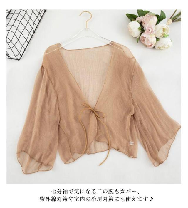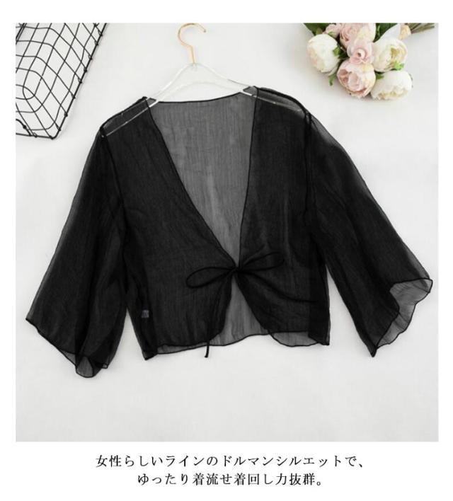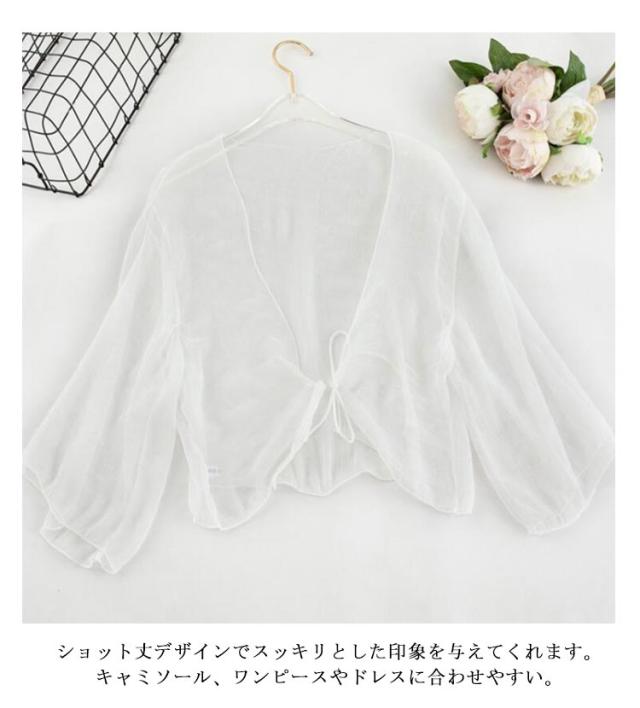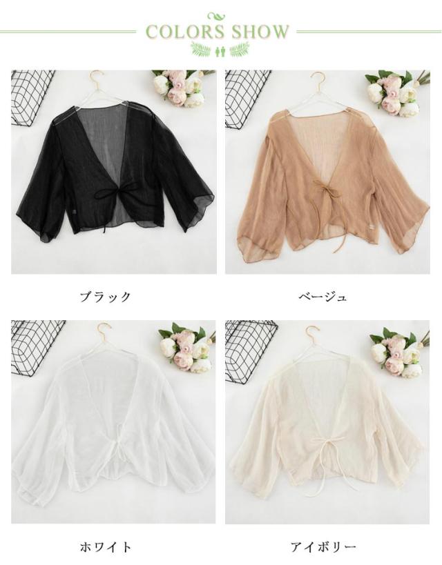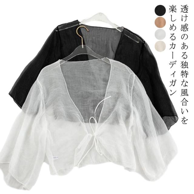 ショート丈 半袖 紫外線対策 カーディガン かわいい シフォン サマーカーディガン UVカット サマーカーディガン おしゃれ シアー 透け感 冷え防止 羽織 冷房 レディース 春 夏 秋 リボン 薄手 シンプル 無地 エアコン対策 冷房対策