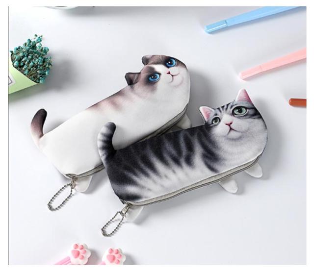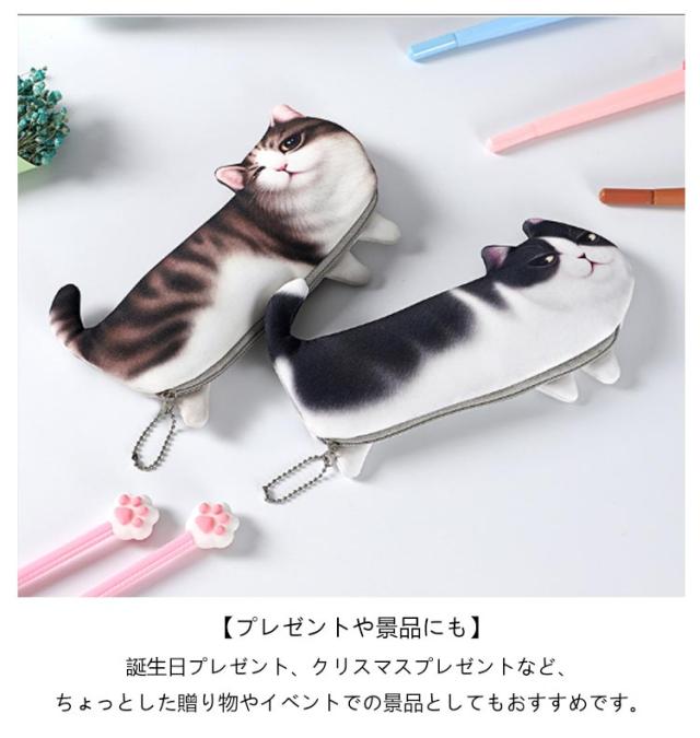 小物入れ 筆箱 ペンポーチ 猫 文房具 ペンケース ポーチ 【2点セット】 おもしろ ユニーク デザイン ネコ 低学年 筆記具 面白い 高学年 新学期準備文具 本物そっくり 学校 習い事 プレゼント アイテム かわいい 【2点セット】 ギフト