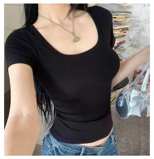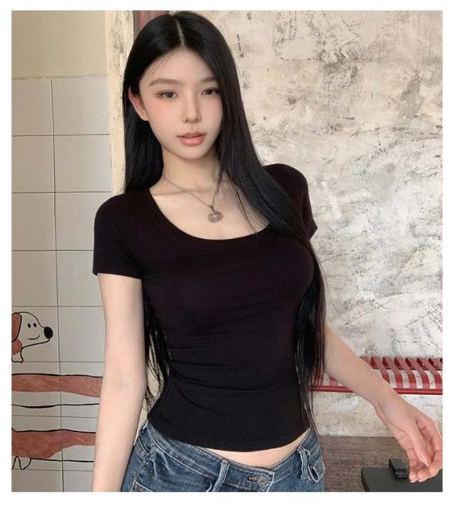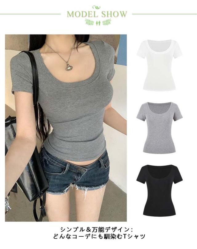 tシャツ 半袖 セクシー シンプル 深め トップス Tシャツ tシャツ 無地 半袖 綿 ノーブラ Uネック 美シルエット タイト フィット おしゃれ カットソー レディース カジュアル オフィス Tシャツ 骨格ストレート インナー 重ね着 細見え