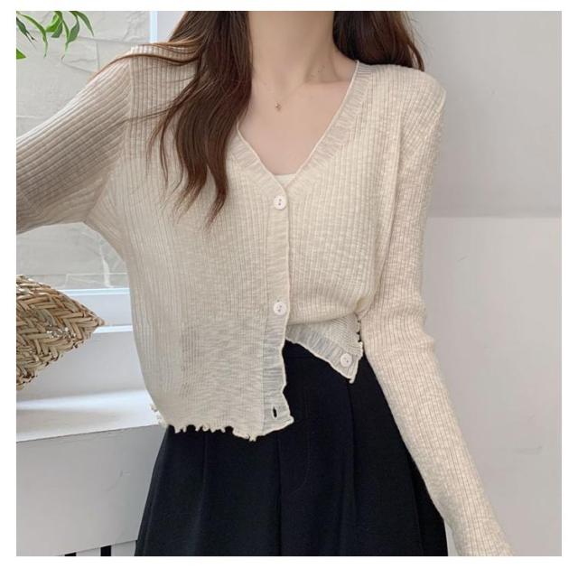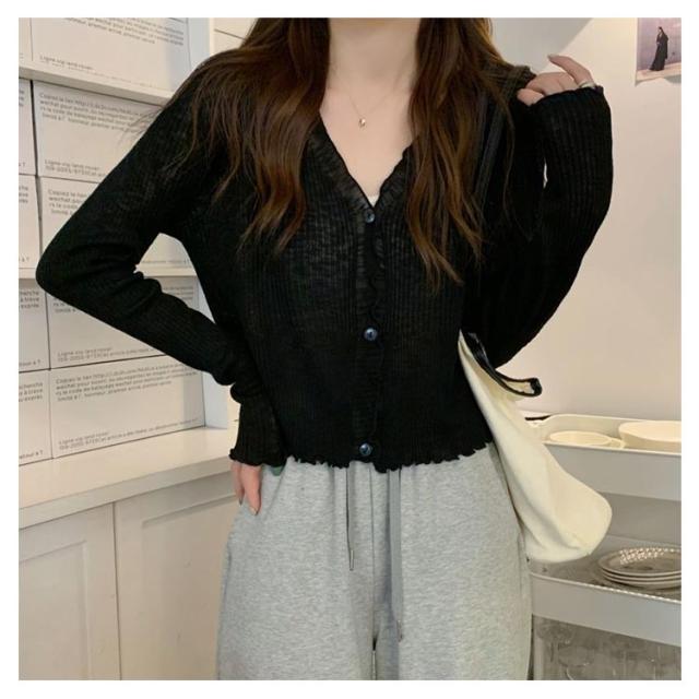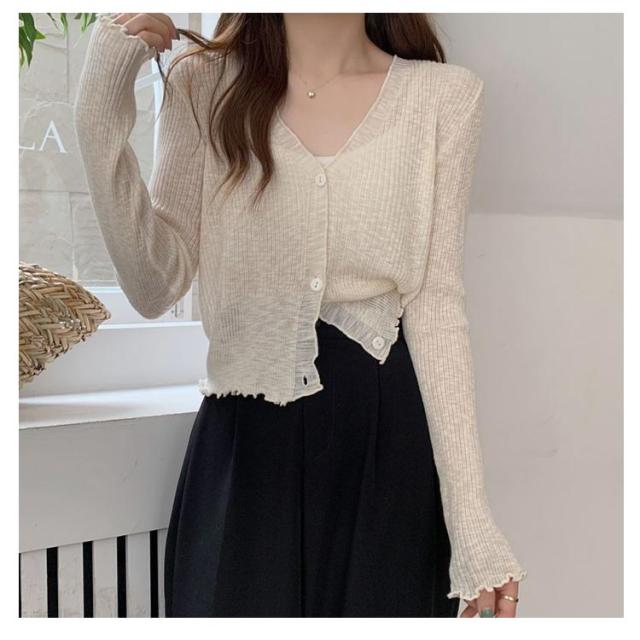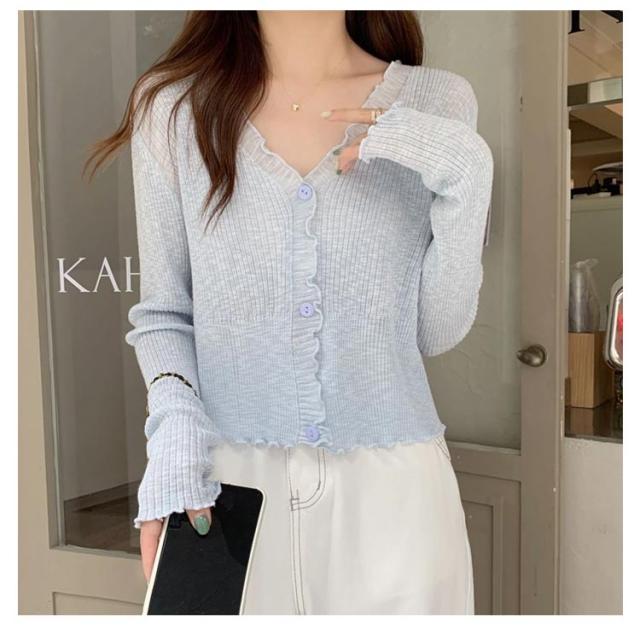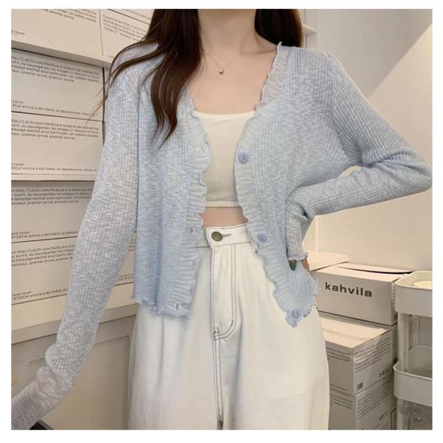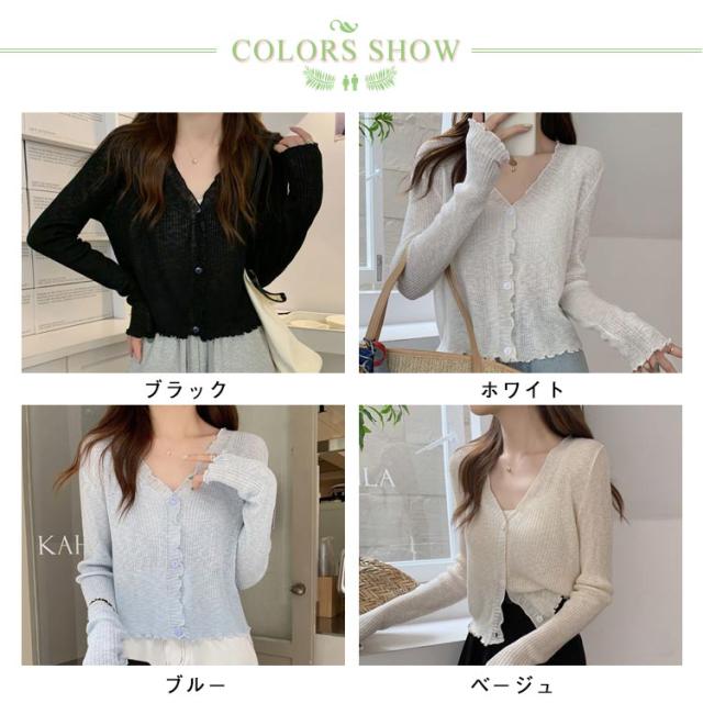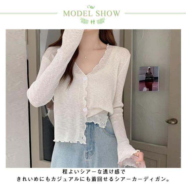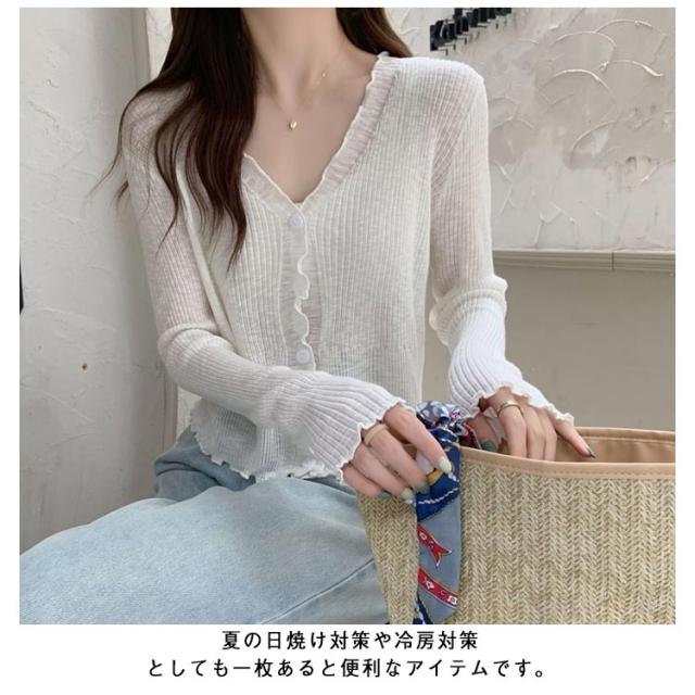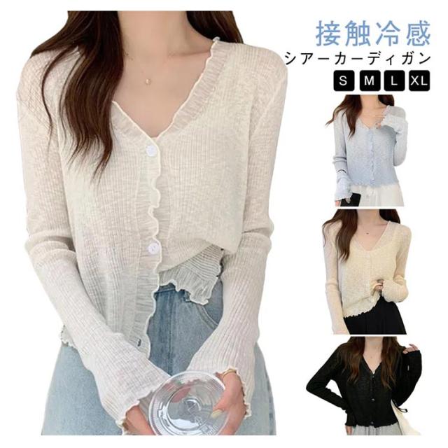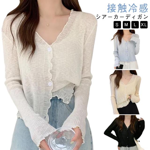 カーディガン 夏用 接触冷感 トップス メロウ 羽織り メロウフリル シアーカーディガン カーディガン 長袖 vネック サマーニット カーディガン 薄手 ショート丈 vネック ショート 透け感 シアー 涼しい 重ね着 レディース 紫外線対策 サマー 春夏 春 夏