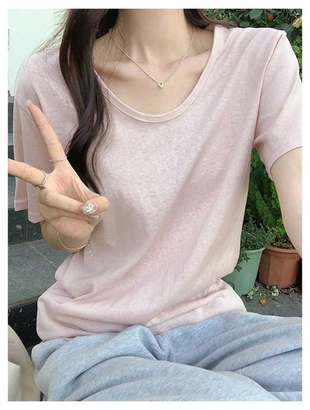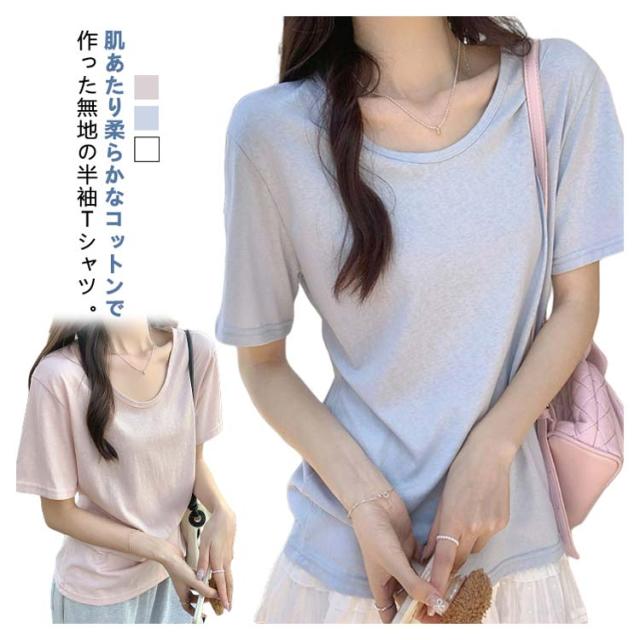 tシャツ 半袖 tシャツ ノーブラ レディース 半袖tシャツ インナー シンプル コットンTシャツ ゆったり トップス 肌着 重ね着 tシャツ 綿 コットン Tシャツ 着?せ おしゃれ Uネック かわいい カジュアル 体型カバー 無地 オフィス 夏