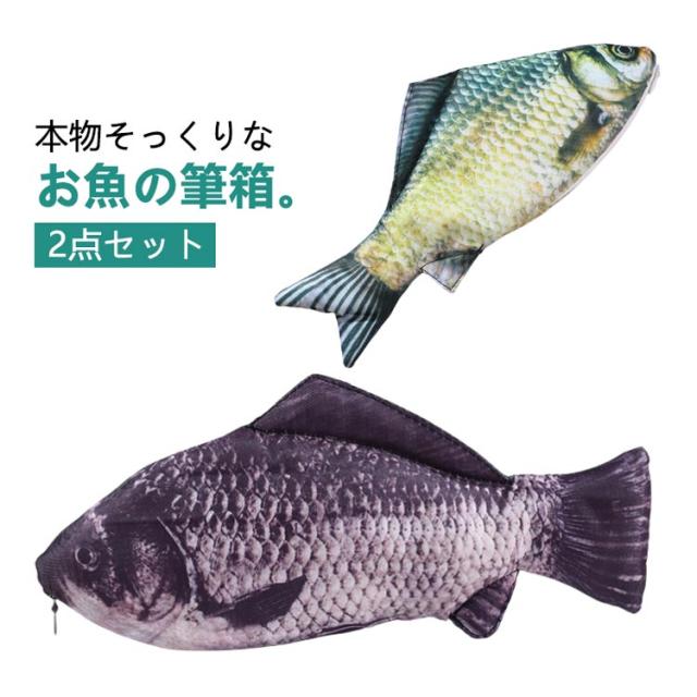 筆記具 ポーチ ペンケース 筆箱 魚 【2点セット】 【2点セット】 リアル デザイン ユニーク おもしろ 小物入れ 習い事 文房具 本物そっくり 学校 面白い リアルな魚がかわいい! アイテム かわいい