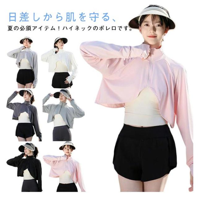 カーディガン 軽量 ショート丈 レディース マント風 ハイネック 接触冷感 UVカット ラッシュガード 長袖 ボレロ パーカー風 薄手 日焼け対策 指穴付き アームカバー ボレロ ゆったり 体型カバー お洒落 夏用