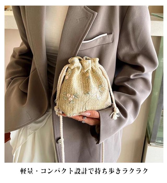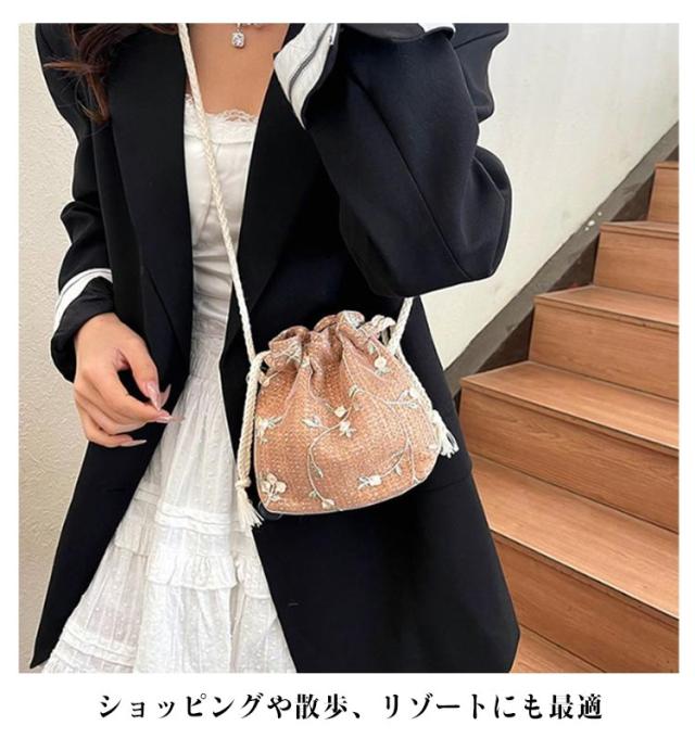 小さめ レディース 巾着バッグ サマーバック かごバッグ かごバッグ 斜めがけ ショルダーバッグ おしゃれ 小物入れ ミニバッグ 浴衣バック リゾート ビーチ 海 お出かけ 子供