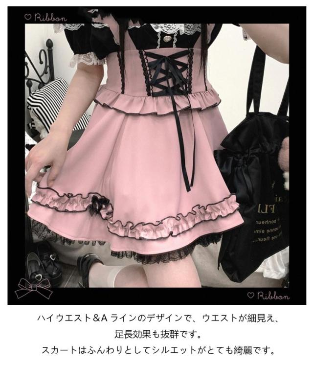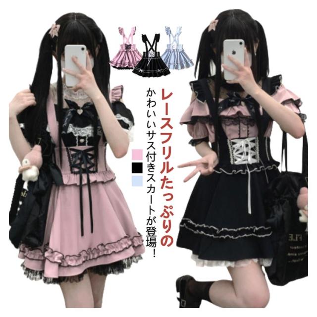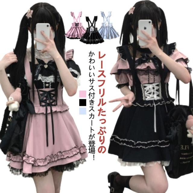 | レースフリルたっぷりのかわいいサス付きスカートが登場! ウエストの部分はレースアップデザインで可愛い! 大きめリボンも付いていて華やかさがUP。 ハイウエスト&Aラインのデザインで、ウエストが細見え、足長効果も抜群です。 スカートはふんわりとしてシルエットがとても綺麗です。 裏地の裾にレース付き、配色ライン入り、フリルがたっぷりの可愛いスカートです。 ふんわりとしたシルエットでとても綺麗です。 量産型、地雷系、天使界隈、ガーリー系、ロリータ系コーデにおすすめです。女子会、デートなど様々なシーンで幅広く活躍中。お洒落で可愛いデザインで、プレゼントとしてもピッタリです。 | |