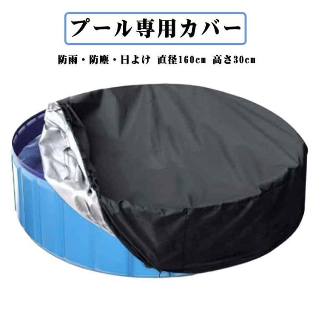 プール専用カバー 丸型 直径160cm 高さ30cm 大型 折り畳みプールカバー 円型 家庭用プール プールカバー 折りたたみプール専用カバー 厚手 丈夫 プールカバー プールキャップ 黒 防水 防雨 防塵 日よけ 日光 子供用プール 送料無料