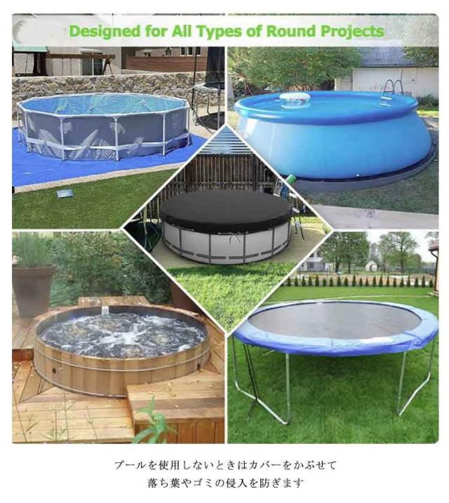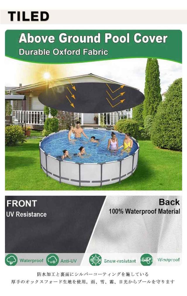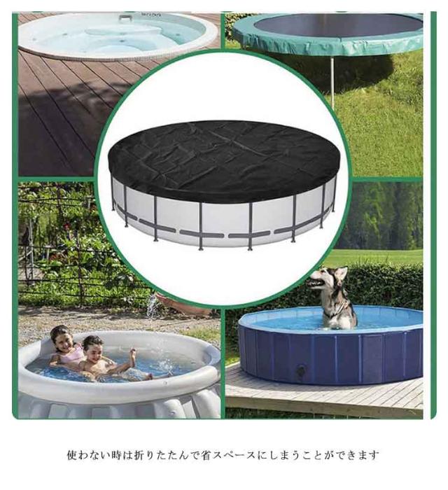 | プール専用カバー 防雨・防塵・日よけ 直径160cm 高さ30cm 防水加工と裏面にシルバーコーティングを施している厚手のオックスフォード生地を使用。雨、雪、霜、日光からプールを守ります。 プールを使用しないときはカバーをかぶせて、落ち葉やゴミの侵入を防ぎます。 プールカバーをかけることで、プールの水を毎回取り換える必要がなくなります。 使わない時は折りたたんで省スペースにしまうことができます。 | |