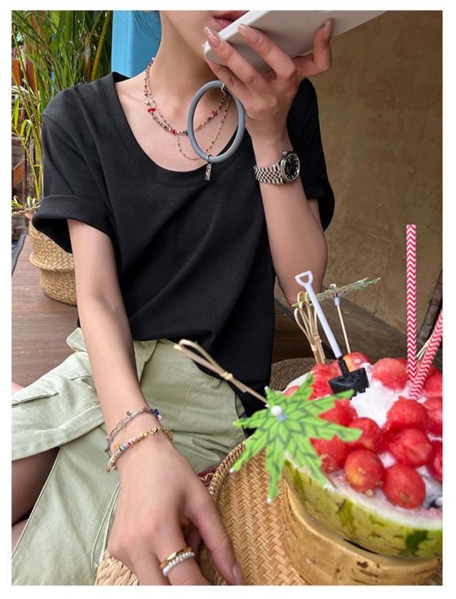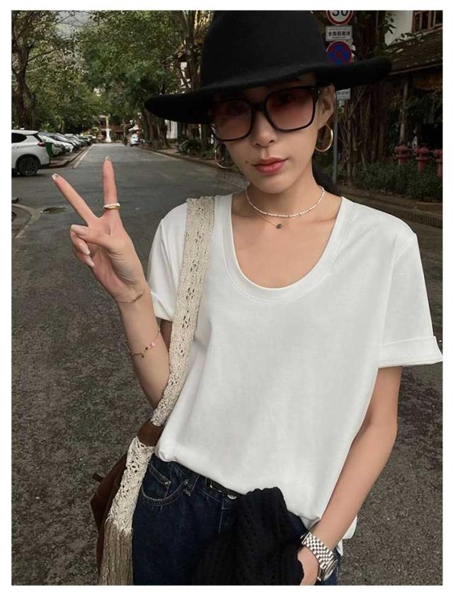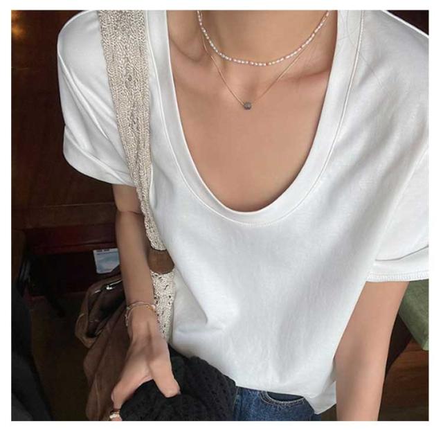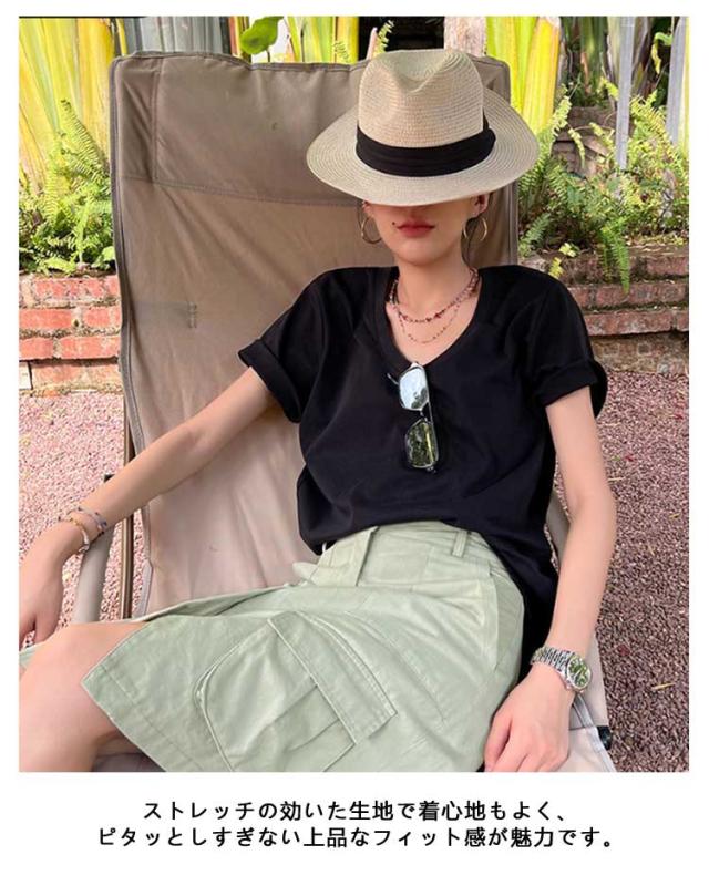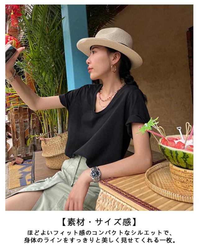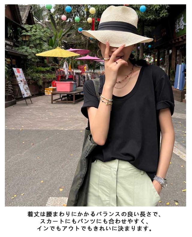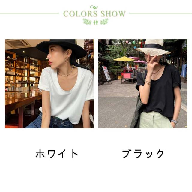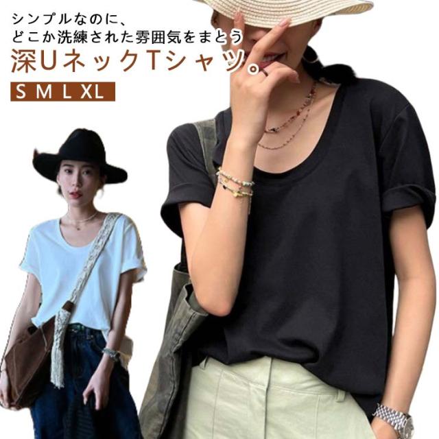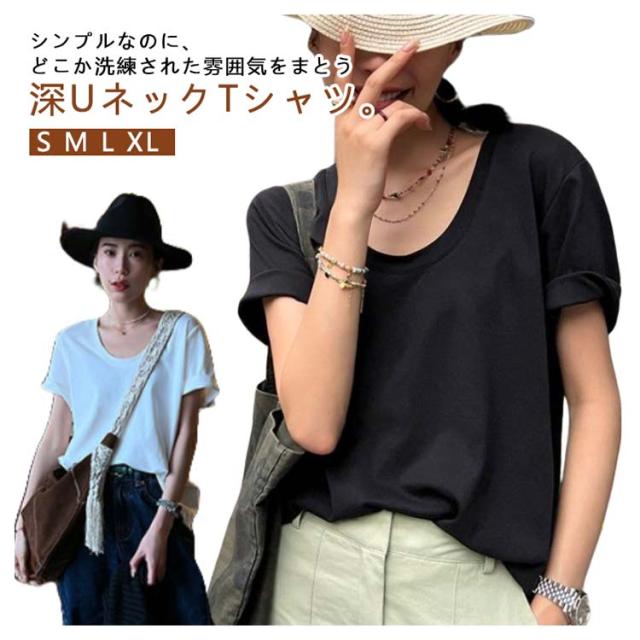 レディース 半袖Tシャツ tシャツ tシャツ シンプル 白t 半袖T トップス Tシャツ tシャツ 無地 カットソー インナー コンパクト 深Uネック ノーブラ ホワイト ブラック 夏 夏服 着回し カジュアル ゆったり おしゃれ 薄手 着痩せ
