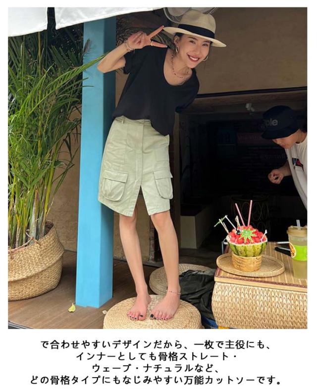 | シンプルなのに、どこか洗練された雰囲気をまとう深UネックTシャツ。デコルテを美しく引き立てるUネックラインが、顔まわりをすっきり華奢に見せてくれます。で合わせやすいデザインだから、一枚で主役にも、インナーとしても◎骨格ストレート・ウェーブ・ナチュラルなど、どの骨格タイプにもなじみやすい万能カットソーです。 【素材・サイズ感】 ほどよいフィット感のコンパクトなシルエットで、身体のラインをすっきりと美しく見せてくれる一枚。ストレッチの効いた生地で着心地もよく、ピタッとしすぎない上品なフィット感が魅力です。着丈は腰まわりにかかるバランスの良い長さで、スカートにもパンツにも合わせやすく、インでもアウトでもきれいに決まります。ジャケットやカーディガンのインナーにもぴったりで、オフィスカジュアルやお出かけコーデにも大活躍してくれます。 | |