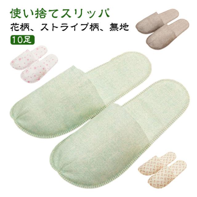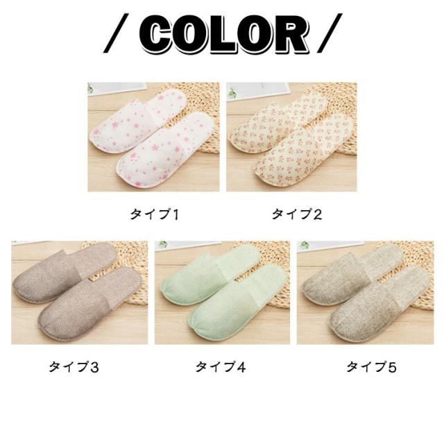使い捨てスリッパ 不織布スリッパ 10足 使い捨てスリッパ 前閉じ 花柄 ホテルスリッパ 機内 個包装 綿麻調 業務用 自宅 高級仕様 旅館 ホテル 来客用 室内履き 滑り止め 入院 病院 車内 綿麻風スリッパ エステ用品 サロン マッサージ店