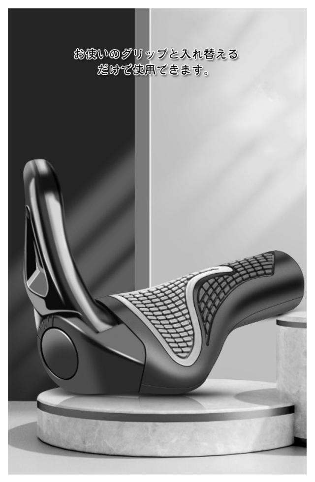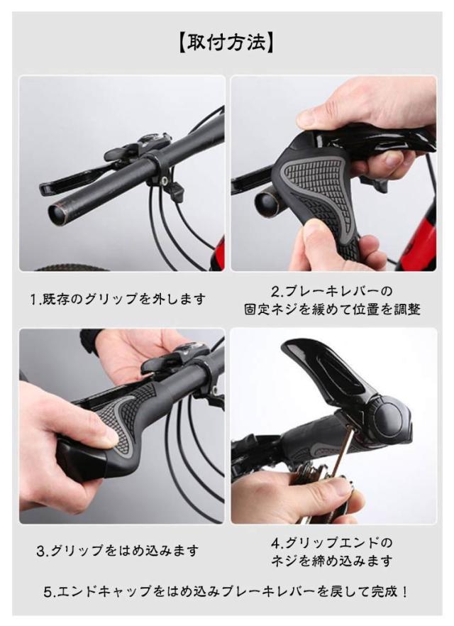 | 握りやすいエルゴグリップです。工具付きで取り付け簡単! お使いのグリップと入れ替えるだけで使用できます。 滑りにくく、手にしっかりフィット!安全な運転を実現。 手のひらの接地面積が広がるエルゴデザインなので、衝撃負担を分散・負荷を和らげてくれます。 雨や紫外線による劣化を防いでくれる加工で長持ち♪ 一般的な自転車のハンドルバーの標準直径は22.2mmです。 多少細い場合はテープ、ハンドルパッド等でご調整をお願いいたします。 平たいフラットハンドル形状で手首への負担を軽減し、長時間長距離の移動に適しています。 握りやすい形状であるため、力を入れて漕ぐ際にも活躍します。 【取付方法】 1.既存のグリップを外します 2.ブレーキレバーの固定ネジを緩めて位置を調整 3.グリップをはめ込みます 4.グリップエンドのネジを締め込みます 5.エンドキャップをはめ込みブレーキレバーを戻して完成! | |