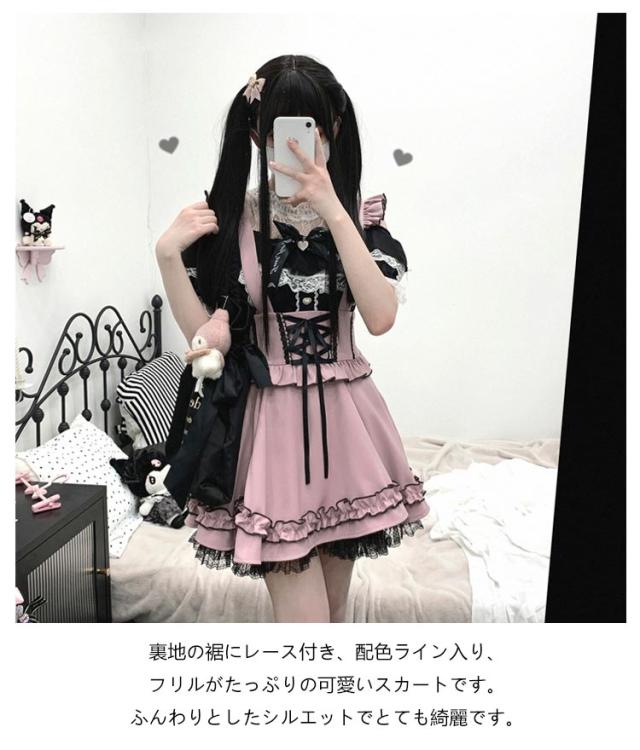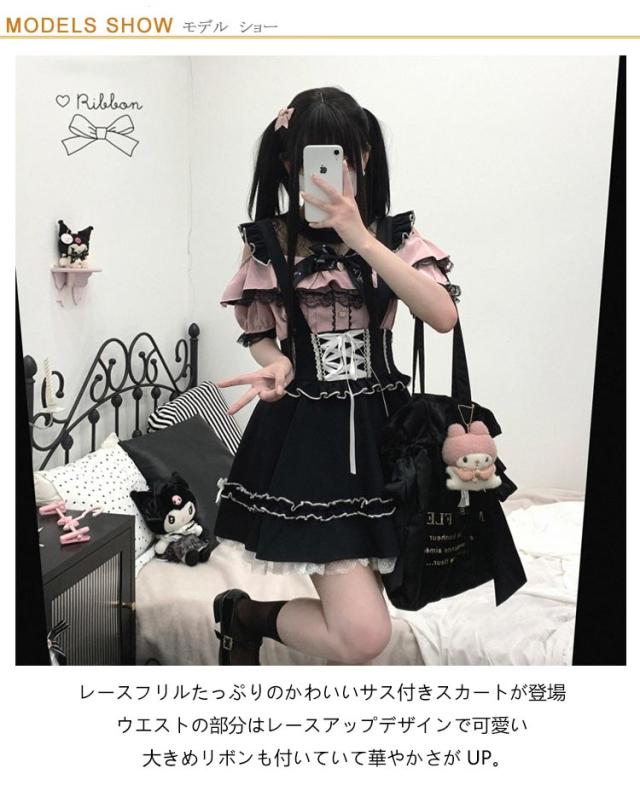 | レースフリルたっぷりのかわいいサス付きスカートが登場! ウエストの部分はレースアップデザインで可愛い! 大きめリボンも付いていて華やかさがUP。 ハイウエスト&Aラインのデザインで、ウエストが細見え、足長効果も抜群です。 スカートはふんわりとしてシルエットがとても綺麗です。 裏地の裾にレース付き、配色ライン入り、フリルがたっぷりの可愛いスカートです。 ふんわりとしたシルエットでとても綺麗です。 量産型、地雷系、天使界隈、ガーリー系、ロリータ系コーデにおすすめです。女子会、デートなど様々なシーンで幅広く活躍中。お洒落で可愛いデザインで、プレゼントとしてもピッタリです。 | |