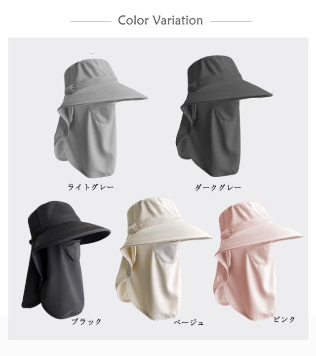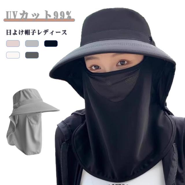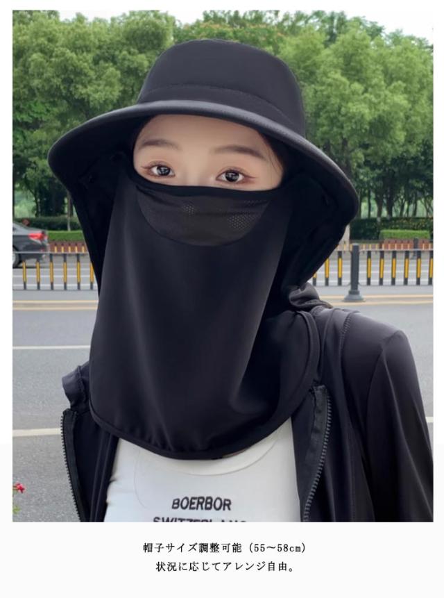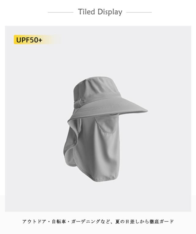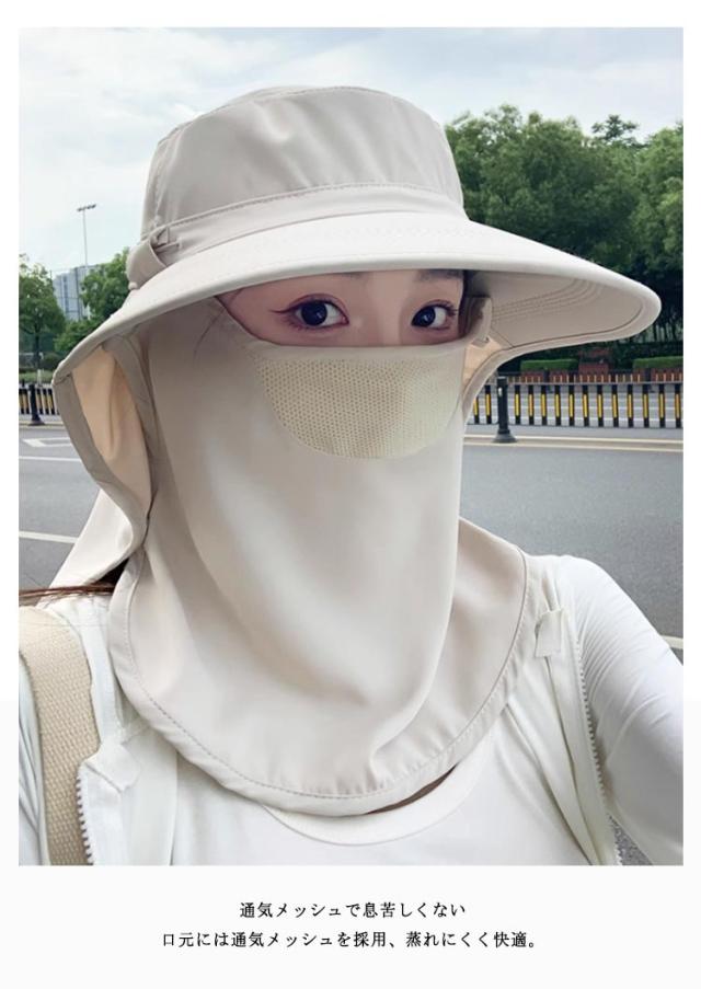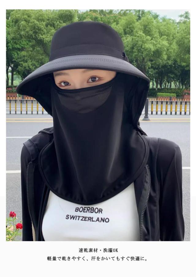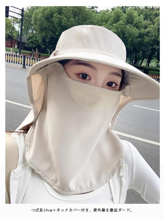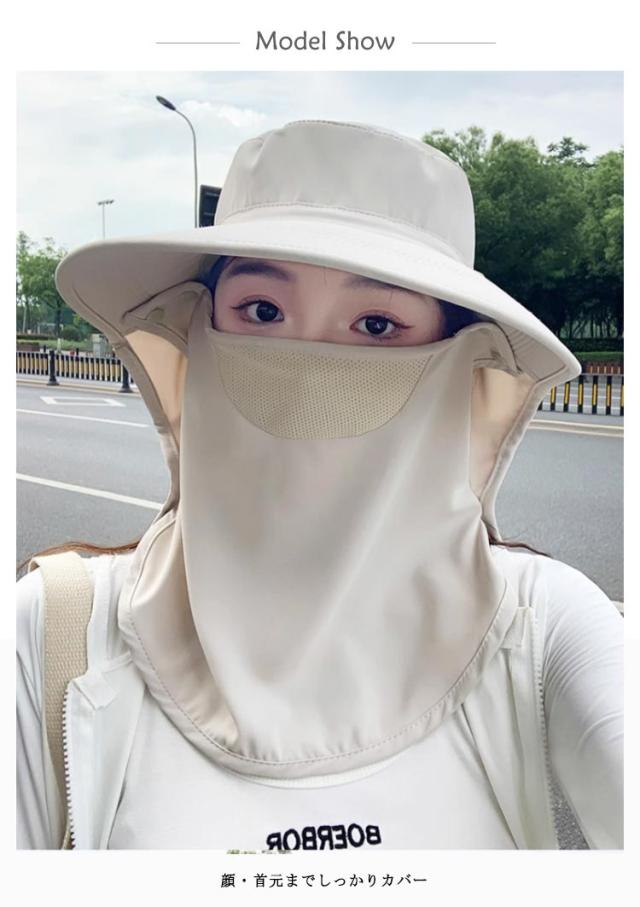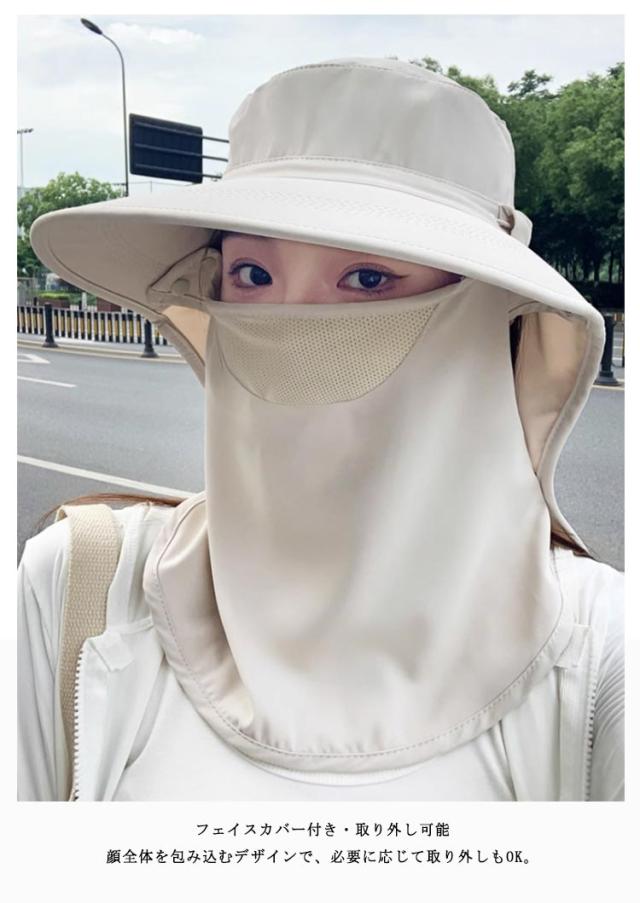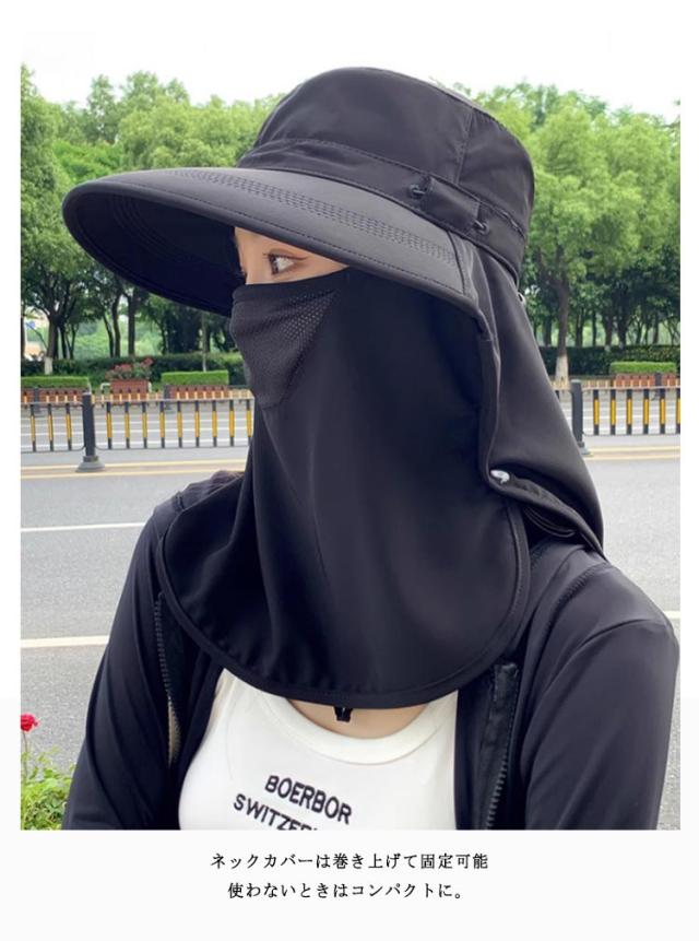 フェイスカバー ハット UVカット帽子 UPF50+ UVカット帽子 ネックガード付き つば広 サンバイザー 一体型 日除け帽子 首筋まで日焼け対策 アウトドア 自転車 ガーデニング