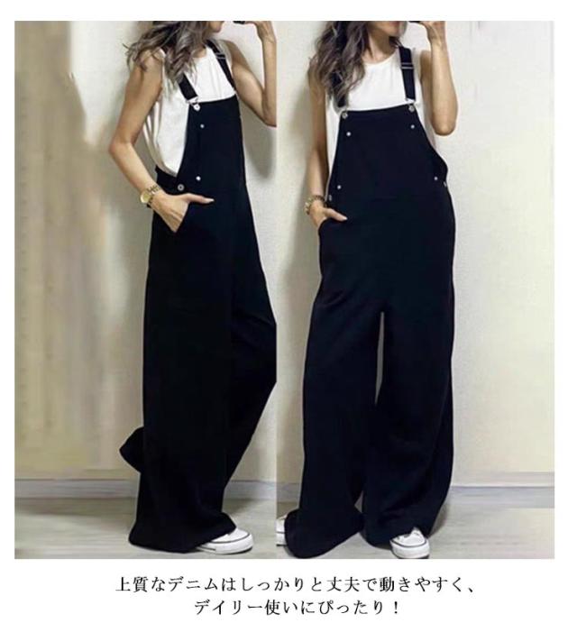 オールインワン サロペット サロペット デニム デニムサロペット ワイドパンツ ロング丈 デニムサロペット サロペット オーバーオール ワイド レディース ゆったり カジュアル 大人 女性 デニムパンツ 大きいサイズ 体型カバー