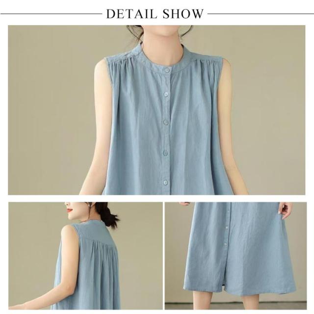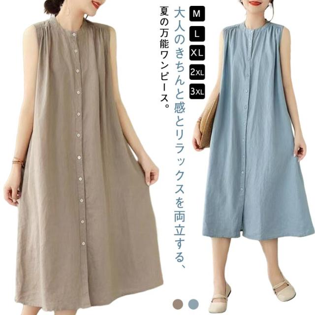 | 大人のきちんと感とリラックスを両立する、夏の万能ワンピース。 ? Aラインシルエットで体型カバー&美ライン ウエストから自然に広がるラインが、気になる体型をカバーしつつ女性らしさを引き立てます。 ? 前開きデザインで着脱ラクラク ボタン付きの前開き仕様なので、羽織りとしても使えて着こなしの幅が広がります。 ? ノースリーブで涼しげ&レイヤードにも最適 インナーやカーディガンと合わせて、ロングシーズン楽しめるデザイン。 ? オフィス・通勤・お出かけに◎ 無地の上品なデザインで、ビジネスカジュアルから休日コーデまで対応可能。 ? ゆったり着られる大きいサイズ展開 M〜2XLまで幅広いサイズをご用意。窮屈感なく、ストレスフリーな着心地です。 | |