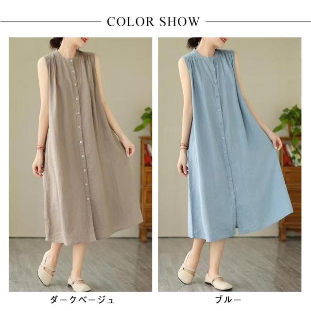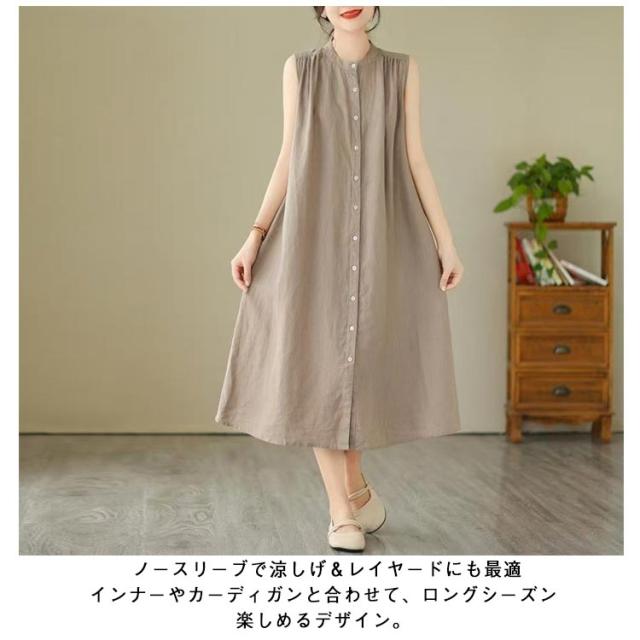 ロングワンピース 無地 大人 シャツワンピース レディース Aライン ワンピース 上品 きれいめ 着痩せ おしゃれ ワンピース ノースリーブ 前開き 通勤 日常 オフィス お洒落 大きいサイズ