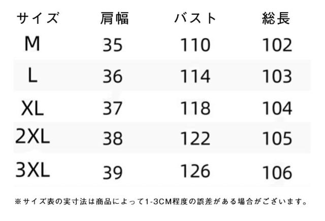 | サイズについての説明 | サイズ 肩幅 バスト 総長 ※サイズ表の実寸法は商品によって1-3cm程度の誤差がある場合がございます。 |