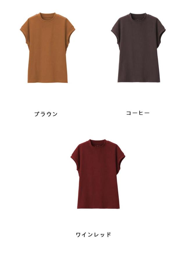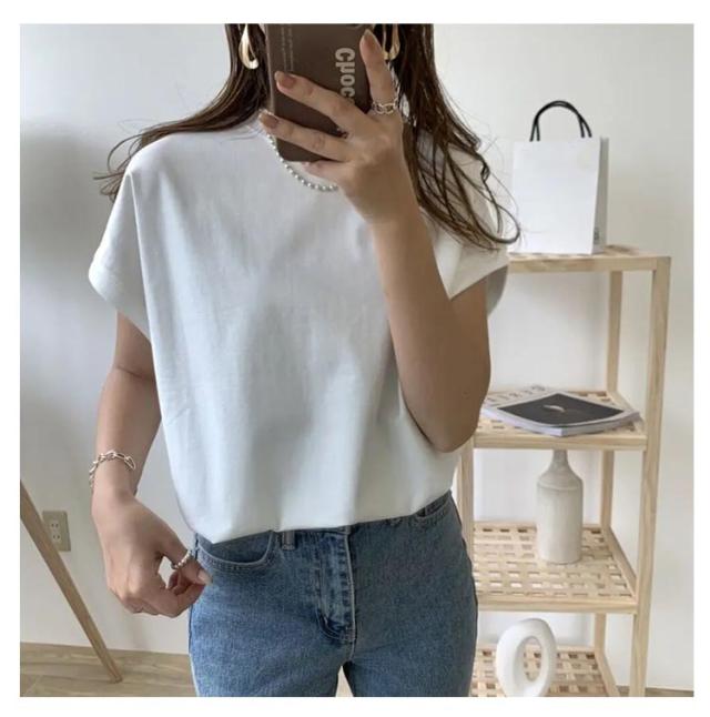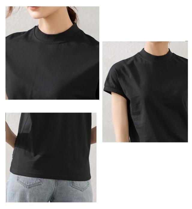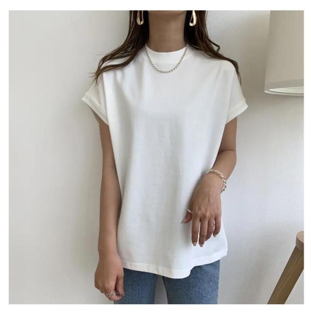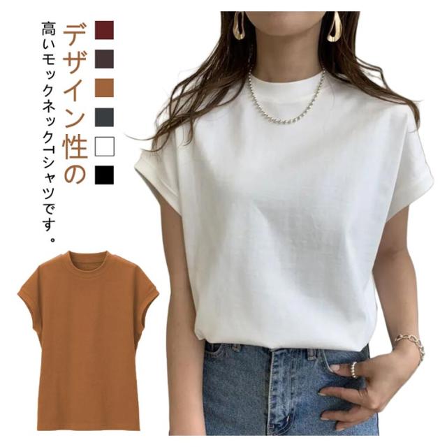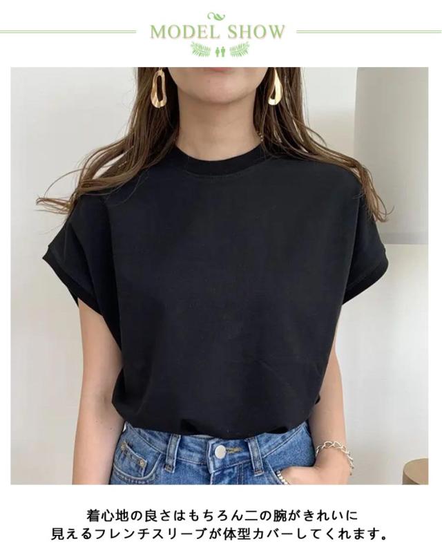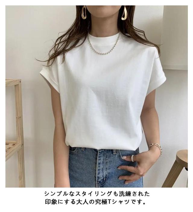 ノーブラ ゆったり Tシャツ フレンチ トップス 半袖 tシャツ カットソー レディース フレンチスリーブ ティーシャツ ハイネック ロング Tシャツ ボックスT 綿 レイヤード クルーネック 二の腕カバー 薄手 着痩せ