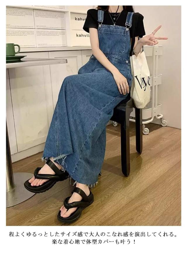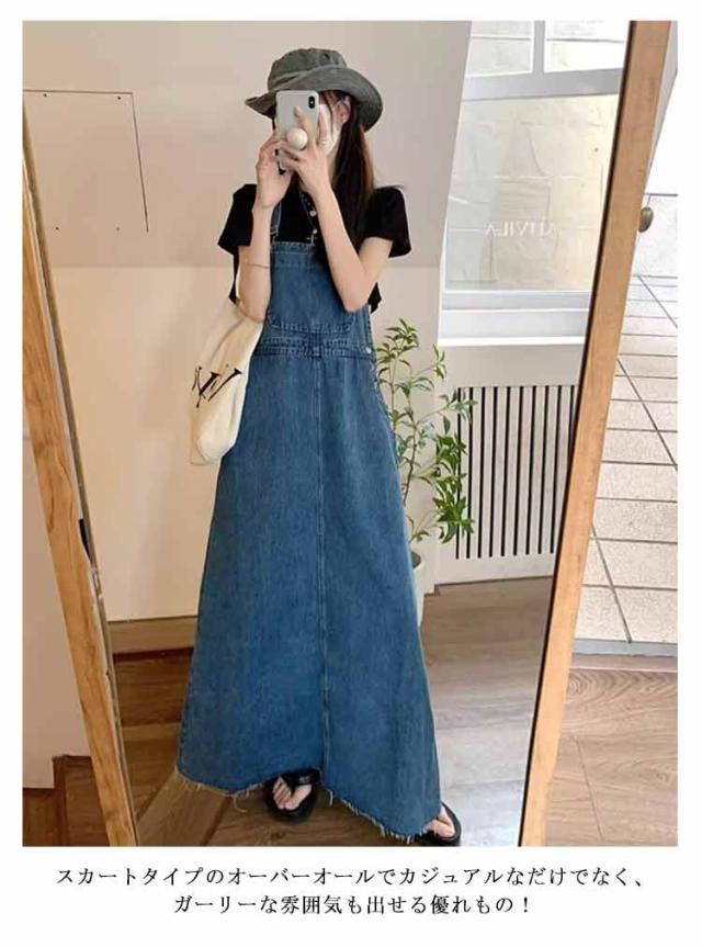 秋 ジャンパースカート おしゃれ 春 夏 サロペット ジャンパースカート デニム ジャンスカ カジュアル レディース サロペットスカート ロング丈 マキシ丈 体型カバー 女性 ワンピース ゆったり オールインワン シンプル 無地 ワイド 大きいサイズ かわいい 着?せ シンプル
