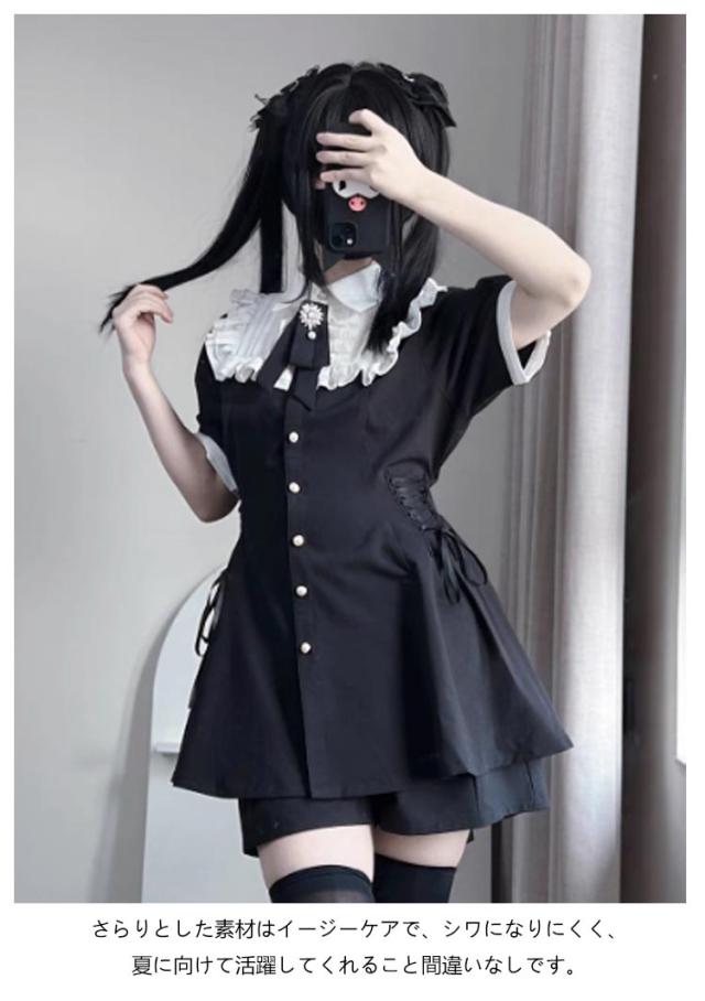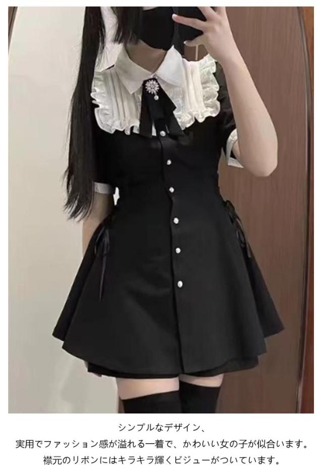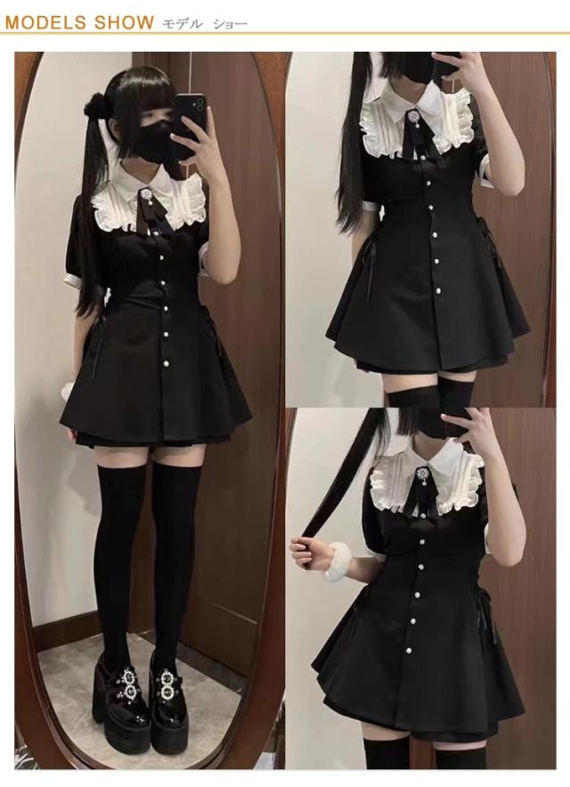 セットアップ 地雷系 薄手 大学生 女子 高校生 地雷系 レディース ワンピース 蝶結び ボタン ギャル 上下セット 半袖 量産型 ロリータ 参戦服 ガール系 ゴスロリ 原宿系 病みかわいい サブカ お姫様 通学 春