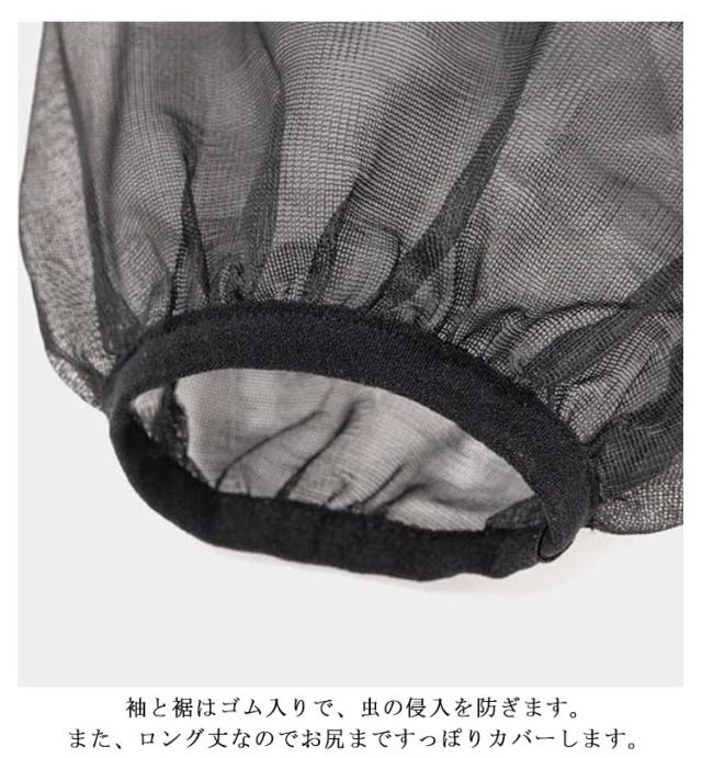 | 虫の侵入をブロック!顔まですっぽり虫よけパーカー 風通し、視界のいいメッシュタイプだからアウトドアや農作業にも便利! 帽子やサンバイザーをつけたままかぶれるフード。 袖と裾はゴム入りで、虫の侵入を防ぎます。また、ロング丈なのでお尻まですっぽりカバーします。 男女兼用、洗濯機で洗えて便利! | |