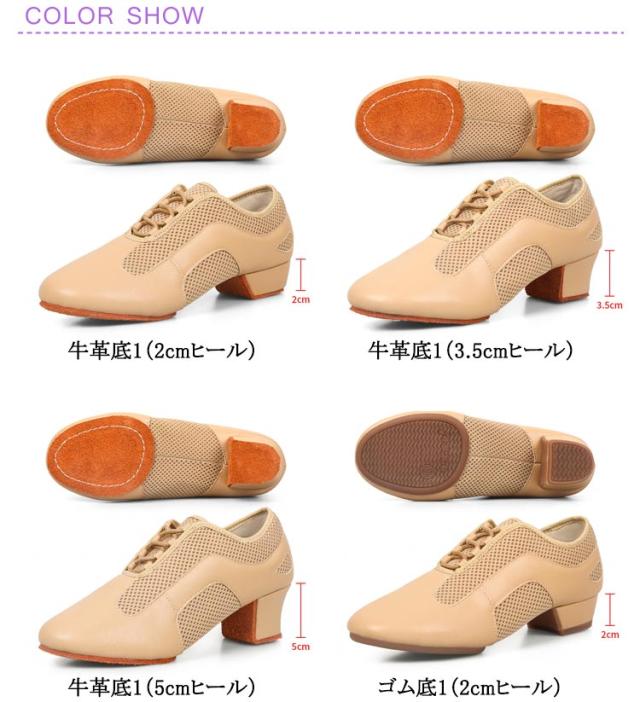 | 2cm/3.5cm/5cmヒール 22.0cm〜26.0cm 通気性抜群のレザー×メッシュの社交ダンスシューズ。 ソフトなインソールを使用した、柔らかく快適な履き心地を実現。 ヒールの高さは3.5cm/5cmの2タイプがあり、種目やダンスのレベルに応じて選択できます。 足をしっかりと包み込むデザインで、フィット感と安定感があるのが魅力。 社交ダンスだけでなく、演劇・舞台・ピアノ発表会などさまざまな場面で使えます。 | |