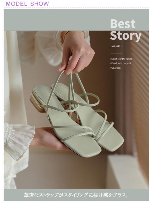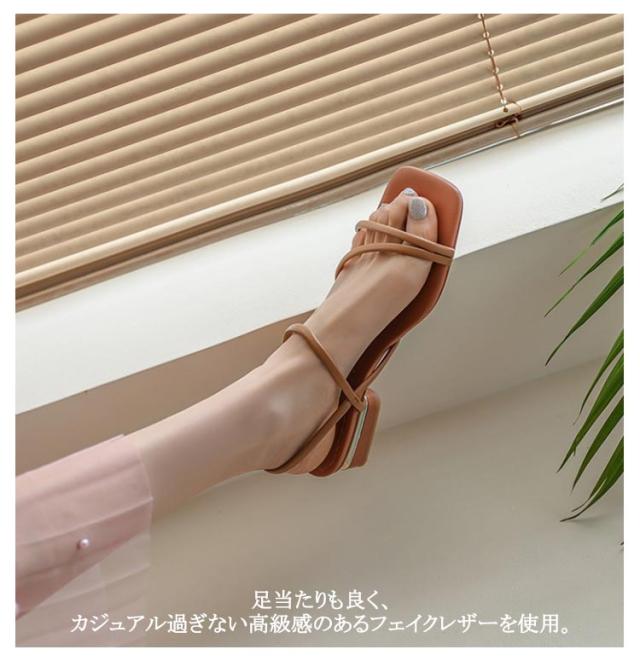 | 華奢なストラップですっきり見えするトレンドサンダル! 華奢なストラップがスタイリングに抜け感をプラス。 足元をすっきりとした印象に仕上げてくれるスクエアトゥデザイン 柔らかい中敷きクッションも感じられ、疲れにくく、痛くないご着用いただけます。 足当たりも良く、カジュアル過ぎない高級感のあるフェイクレザーを使用 カジュアル〜きれいめ、エレガントスタイルまで幅広く活躍 | |