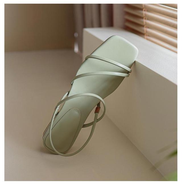 ヒール3cm フラット サンダル 脱げない スクエアトゥ 華奢 ぺたんこ ローヒール 細ストラップ ナローストラップ 歩きやすい ストラップサンダル 痛くない 柔らか 美脚 細ストラップ きれいめ コンフォートサンダル グリーン ホワイト ブラウン